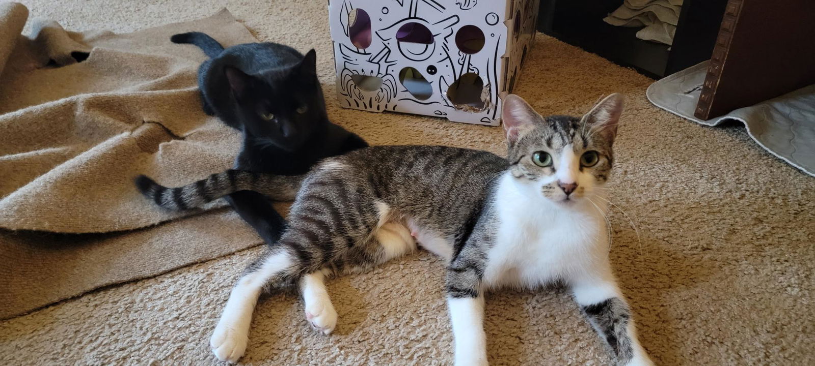 Such a sweet girl! Doesn't know what stranger means. Always willing to eat. Can be very playful! Loves Wand toys. When she gets the zoomies it is so cute! Just like a kitten but with the maturity of an adult! Her adoption fee is $85 which includes all of her vetting (spay, microchip, and all age-appropriate vaccines).