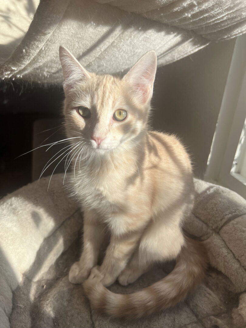 Please contact Marilyn (marileealong@comcast.net), (925) 788-4397 for more information about this pet.Meet Graham! This sweet little kitten may be initially shy with new people, but once he gets to know you, he quickly warms up and shows what a loving, affectionate kitty he is at heart. Graham loves leaning in for pets and will start purring in delight as soon as you give him some attention. He’s a playful boy who enjoys romping around with his sibling. Graham gets along great with other cats and does well with cat-friendly dogs. Please contact Marilyn (marileealong@comcast.net), (925) 788-4397 for more information or contact the foster directly at StefanieMoore1019@icloud.com 925-588-4107