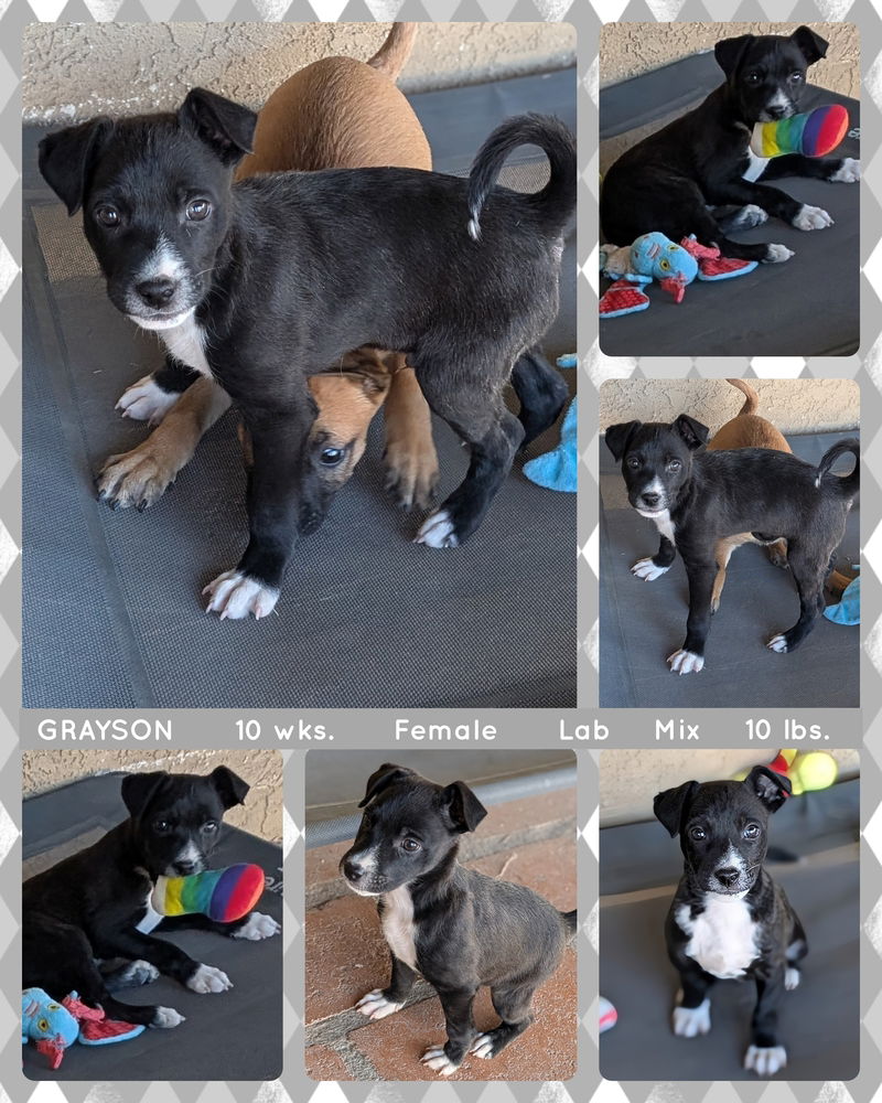Available for Adoption!Meet Grayson, an affectionate and playful puppy with a moderate energy level. He loves to run, chase balls, and enjoys time in the yard with his favorite bone. Although he's the runt of the litter, Grayson holds his own in playtime with his siblings. His gentle nature and loving personality make him a joy to watch and be around. If you're looking for a sweet and spirited companion, Grayson would be the perfect addition to your family! He's currently learning basic commands like "come," "sit," "down," "leave it," and is working on "place" & "stay." He is also working on crate/potty training, great with kids, cats and all dogs. Grayson has had 2 vet visits, is neutered, microchipped, vaccinated x 3 DHPP (needs 1 more to be Fully vaccinated), Rabies (when old enough), Bordetella X 2, had a 4 DX test (Testing for 2 types of Tick, Lyme and Heartworm), Nexgard Spectra (Flea, Tick & Heartworm preventative), 2 dewormings, 2 fecal tests. Adopters receive all original paperwork, a 14 day health guarantee, collar, Harness, leash, seatbelt lock and a weeks worth of food. We operate on a first come first serve basis and are by appointment only. We are located in Mesa near Gilbert/Brown & offer flexible hours for meet & greet appointments. Private message if interested!