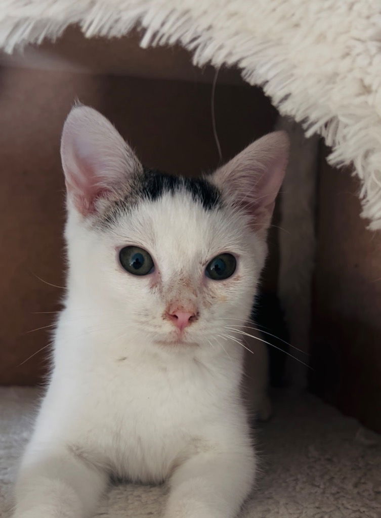 Hi! I’m Grits, a kitten with a heart full of love and paws full of play! My days are filled with chasing toys and exploring every nook and cranny. I’m super friendly and love meeting new friends. Cuddles? Absolutely! I’m always ready to snuggle up and share my purrs. I’m curious about everything, which makes every day an adventure. If you’re looking for a sweet, playful companion to add joy and laughter to your life, I’m your kitten! Let’s make wonderful memories together.To inquire about adopting this cat please complete an adoption application at tinyurl.com/ccapadoptions Once you submit an adoption application, a foster will reach out within 48 hours to schedule a meet-and-greet or ask any additional questions. If you haven’t heard back within that time, please contact **adoptions@sanantonioferalcats.org** so we can follow up. If the cat you’re interested in isn’t listed in the dropdown menu, it may be pending adoption or recently adopted, but the website hasn’t been updated yet. Feel free to email us for confirmation. Thank you for choosing to adopt one of our amazing cats!