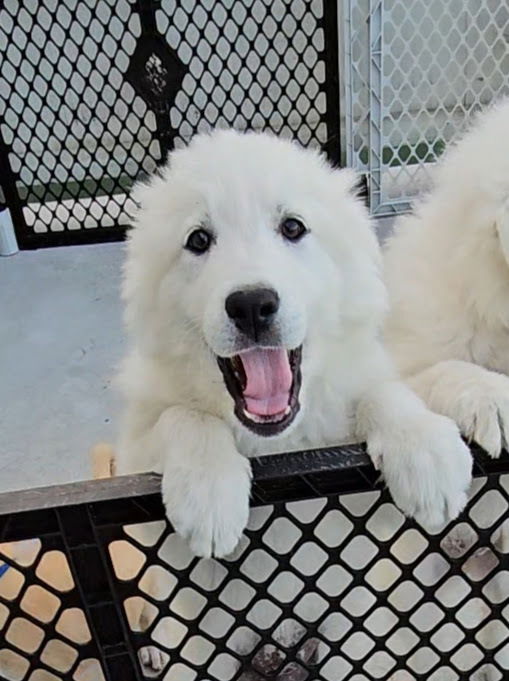 Meet Grumpy (blue collar)!This sweet Great Pyrenees puppy brings joy and excitement wherever she goes. Not grumpy at all! Curious, courageous and playful, she loves nothing more than engaging her twin sister or her big foster brother in energetic play sessions. Her sister is always down to play, her foster bother not so much, but that doesn't discourage Grumpy.When you arrive, expect an enthusiastic greeting as Grumpy bounds over to shower you with affection. After burning off her puppy energy with fun playtime, she will happily crashing out beside you for some heart warming snuggle time.Grumpy combines the classic Great Pyrenees gentle temperament with puppy playfulness, making her the perfect addition to an oving home. If you're looking for a loyal, affectionate companion who will fill your days with both adventure and tender moments, Grumpy is waiting to meet you!For more photos and videos please see our website www.hdbnqrescue.org/bitches youtube page: https://www.youtube.com/@HDBnQRescue