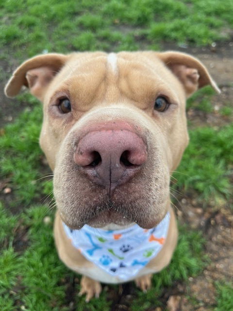 Guero is a 2 years and 9 months old, 63 lbs. boy in search of his forever home. Guero is friendly with male and female dogs. He may get a bit too excited with new dogs and may get too close to their private parts so he will need a pawrent that can teach him some boundaries. Because of his excitement, it is better to introduce him to new dogs slowly. Guero is always friendly but some dogs may not enjoy the intense sniffing that comes when meeting Guero. After the first minutes of excitement, Guero will just want to chill and do his own thing. For sure, he loves running with his buddies in the yard and loves chew sticks and plushy toys that squeak. Inside the house, his foster mom describe shim as “basically a lap dog but huge.” He loves to cuddle with people and will spend 80% of his time on the couch. He sleeps in his crate every day and potties outside only. Note: At the end of February 2025, Guero will have surgery to correct his right eyelid (that is growing inward – called "entropion"). We will post new photos of his new "look" soon but there is not doubt that he will look as handsome as always. The surgery is necessary because, without correction, the eyelashes will damage his right cornea. Things that he needs to work on is humping when excited. His foster mom has made great improvements with this behavior but he still needs redirection here and there. Occasionally, a dog got annoyed at him when he got too close, but Guero’s instinctual response was to move away from the dog (he never growled even when the other dog showed signs of aggression – he is a real pacifist puppy). He would also benefit from some leash-training as he can pull a bit when excited. He is fostered with 6 other large and medium size dogs and gets along with all of them.Best home for Guero: this pup would do well in a home with parents that have had prior experience with big dogs, with children aged 9 and above, and with friendly dogs looking for a yard running pal.Guero's rescue story: this puppy was living on the streets of Houston for months before a volunteer took him to her house. She became attached to him after seeing how sweet he was with the people living in the volunteer's apartment building. We think that he had an owner at some point and was abandoned after he got "too big" but he wasn't chipped and no one ever looked for him (the volunteer posted him in lost and found dog websites without any luck).This dog is up to date on vaccinations and is neutered. (Please note: Puppies under 3 months old may not be sterilized prior to adoption. If this is the case, your adoption coordinator will provide guidance on the process.)To adopt or learn more about this dog, you must complete an adoption application, which can be found on our website: www.sandypawsrescue.com.PLEASE READ: • If a dog or puppy is listed, they are currently available for adoption. However, they may already be pending an adoption, and their profile may not yet reflect this. • All information is accurate to the best of our knowledge as of the posting date. • Unless explicitly stated, Sandy Paws Rescue does not guarantee the breed of any dog. Breeds listed are educated guesses made by shelter staff, volunteers, or veterinarians. Many of our dogs are mixed breeds, often with pit bull-type genetics, resulting in a wide variety of physical traits and temperaments.Our dogs come from various situations, such as kill shelters, owner surrenders, or as strays. It is likely both parents were mixed breeds as well.Sandy Paws Rescue does not have a public shelter in Massachusetts. Our dogs reside in private foster homes or boarding kennels in the South until adopted. Many dogs are spoken for prior to transport or release from state-mandated isolation.For information on adoption fees, procedures, or FAQs, visit our website: www.sandypawsrescue.com.The FIRST step in adopting from Sandy Paws Rescue is to submit a completed adoption application.Sandy Paws Rescue’s MA license number # 0272