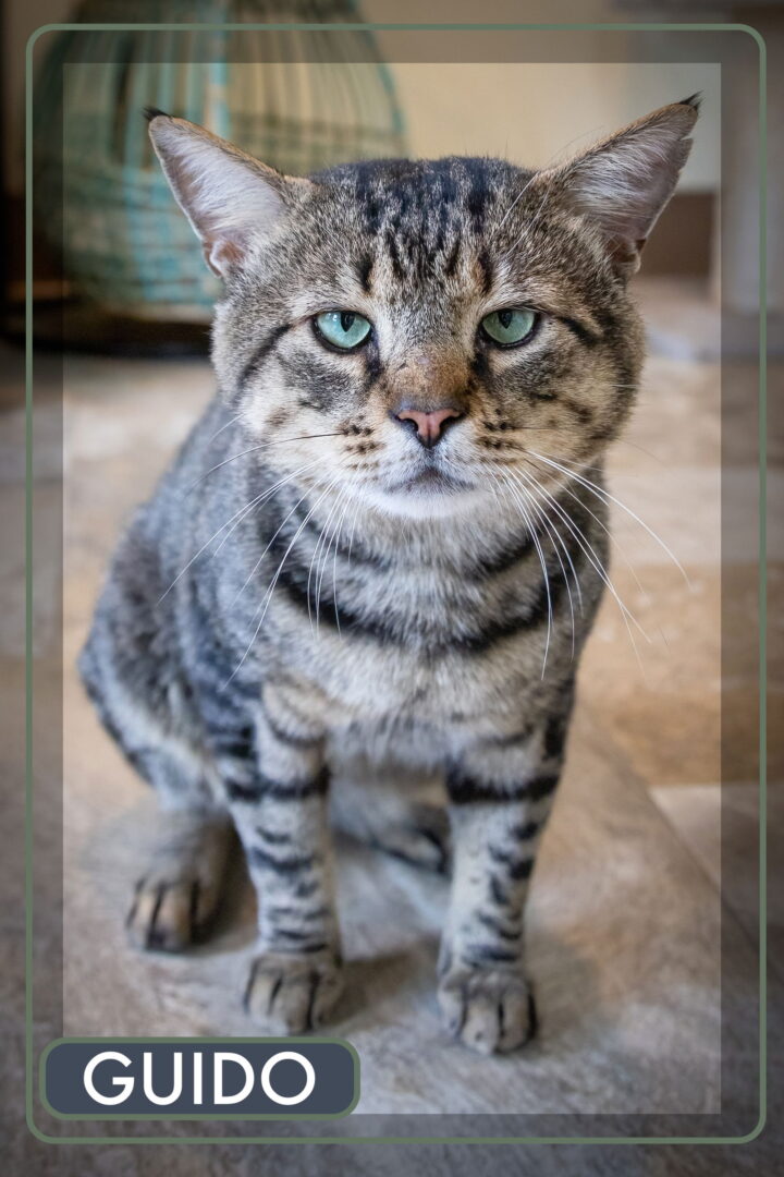 When I visited Guido he was striking a casual pose with his front legs stretched forward like a sphinx. Check out his photo and video. Such a handsome tabby with lovely green eyes. His facial expression looks sad, but I doubt that Guido really is sad. He quietly enjoyed pets and soft chit chat. He was patient with the other cats who came by to get some attention. But, Guido will surely be one happy boy when he gets to relax in his forever home. Could it be yours? Guido had been adopted in Oct. and recently returned as he did not get along with the resident dog. Do YOU have a dogless home for Guido? Check out his video. Guido is enjoying the pets and rubs: https://www.youtube.com/shorts/89XKNlmYqB0 . Please submit a no-obligation Adoption Application: https://forgottencats.org/adoption-application/. Not ready to adopt? Please consider fostering. Here is the link to our Foster Application: https://forgottencats.org/foster-a-cat/. Thank you! (Foster: Trainer)