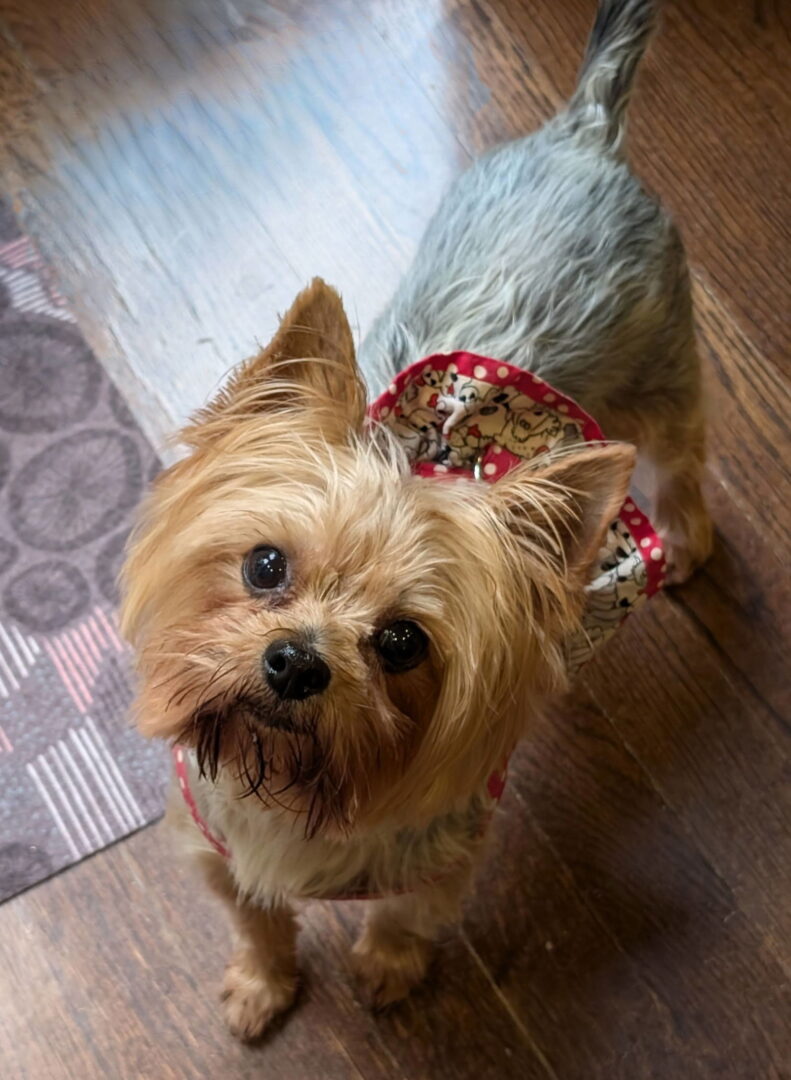Hadley is a sweet Yorkie who is 8 years old and weighs 9 lbs. Hadley is an observant Yorkie yet, tends to be quieter than most and loves attention. Hadley came to us as a breeder release and had never lived in a home as someone's dog, so many things are new to her, such as noises around the home and stairs. She has learned quickly to adapt and enjoys sitting on the couch with her foster parents. Hadley is working on housetraining and leash walking, but she will need someone with time and patience to help her be successful. We also have Hadley’s sister Harkness in foster care. Harkness is a little more outgoing. They would make a perfect pair for someone looking to adopt two Yorkies, however, they are not necessarily bonded and do well being separate from each other, so we are not requiring them to be adopted together. Please take a look at Harkness’ bio if you are interested in adopting two Yorkies. Hadley could be an only dog or have another dog under 15 pounds in the home. WE REQUIRE AN ALL-ADULT HOME WITH A SECURELY FENCED YARD. The secure fence must be 4ft or higher, gaps no larger than 1 1/2 inches, which is attached to the home. An invisible fence, enclosed patio or terrace without grass, temporary fencing, dog pens or dog lots or community shared fencing (dog park) are NOT considered secure fencing. If your fencing has "puppy pickets" (or is supplemented with garden fencing) it needs to be at least 36 inches high from the ground up AT THE LOWEST POINT. No exceptions. The adoption range for this dog is limited to NC, SC, VA and East TN. If you are interested in adopting this dog, contact h2hadoptions@gmail.com. There is an application process and adoption fee. We are an all-volunteer organization, and in addition to saving dogs, we have other responsibilities, so we appreciate your patience and understanding during this process. Response time can take up to 5 business. Please inquire only if you are willing to come to Greensboro, NC to meet the dog after we schedule your home visit. We do not ship dogs or put them on transports. Veterinary Care: All Hart-2-Heart Rescue foster dogs are spayed/neutered, current on heartworm prevention, parvo/distemper, bordetella, and rabies vaccines, and are professionally groomed and microchipped. As needed, our foster dogs have teeth cleanings, extractions, bloodwork and other diagnostic testing. Adoption Fee: $500