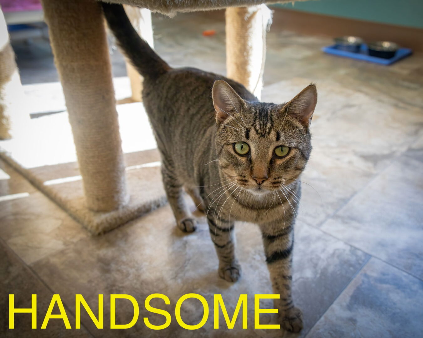 This is Handsome! He weighs 10.5 pounds and is estimated to be 3 years old. You literally will not find a cat more perfectly-named. This boy is supremely HANDSOME! His intelligent eyes are a brilliant green. They are surrounded by dark and light bold strokes of eyeliner. Handsome has a bold Roman nose. He has cute little pointed ear tufts and his tabby stripes are gorgeous. Yes, Handsome is undoubtedly a remarkable boy. His face and profile remind me of a regal mountain lion. Handsome is also a cool dude. When I was petting him, other cats gathered all around for their turn. Handsome didn’t mind at all. Handsome has a confident manner. Would you like to bring this elegant boy into your family? Please check out his short video: https://www.youtube.com/shorts/hcdUmxDy_0I . Handsome would love to be in a home environment. Please submit our no-obligation Adoption Application for a meet and greet or to adopt: https://forgottencats.org/adoption-application/. Not ready to adopt? Please consider fostering: https://forgottencats.org/foster-a-cat/. Thank you! (Foster: Trainer)