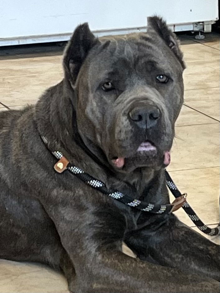 See Hannah’s HomepageGo to our official websiteYou can fill out an adoption application online on our official website.Meet HannahHannah is a very dog friendly female corps between 1 and 2 yrs. She is well mannered and knows basic commands. She does well on car rides Loves toys Great with people Has no stranger danger Walks well on a leash Www.azmastiffrescue.com