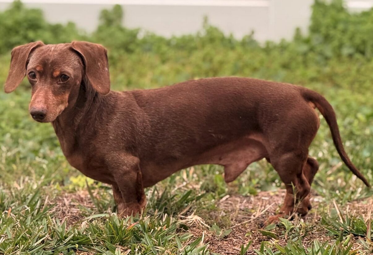 Apply to Adopt Me! Harley is a 10-year-old, 15lb. male dachshund with a heart full of love and a relaxed, easygoing nature. This little guy is the ultimate cuddle bug – he loves snuggling up with his humans and will even climb onto your lap for a cozy nap. Harley enjoys going on walks, exploring the house, and especially, sunbathing in the backyard (he’s totally solar-powered!). He’s house-trained, crate-trained and gets along great with other dogs, even big ones. He especially loves following around his foster dog brother and snuggling up next to him, so for that reason, we would like a doggy companion for him. While he’s not good with cats, he’s incredibly friendly with all people including kids and warms up quickly. He’s also not mouthy at all and rarely barks, but he’ll always greet you with excitement when you come home. He is an ok car rider, but does shake while he's riding. Since he's a dachshund, he should not be allowed to jump on or off furniture, so stairs or a ramp is needed for him. If you’re looking for a sweet, affectionate pup who’s equal parts cuddle buddy and adventure companion, Harley is ready to be your new best friend! If you live in the Central Florida/Orlando area and believe you have the perfect home for Harley, please complete an app and tell us more about you.