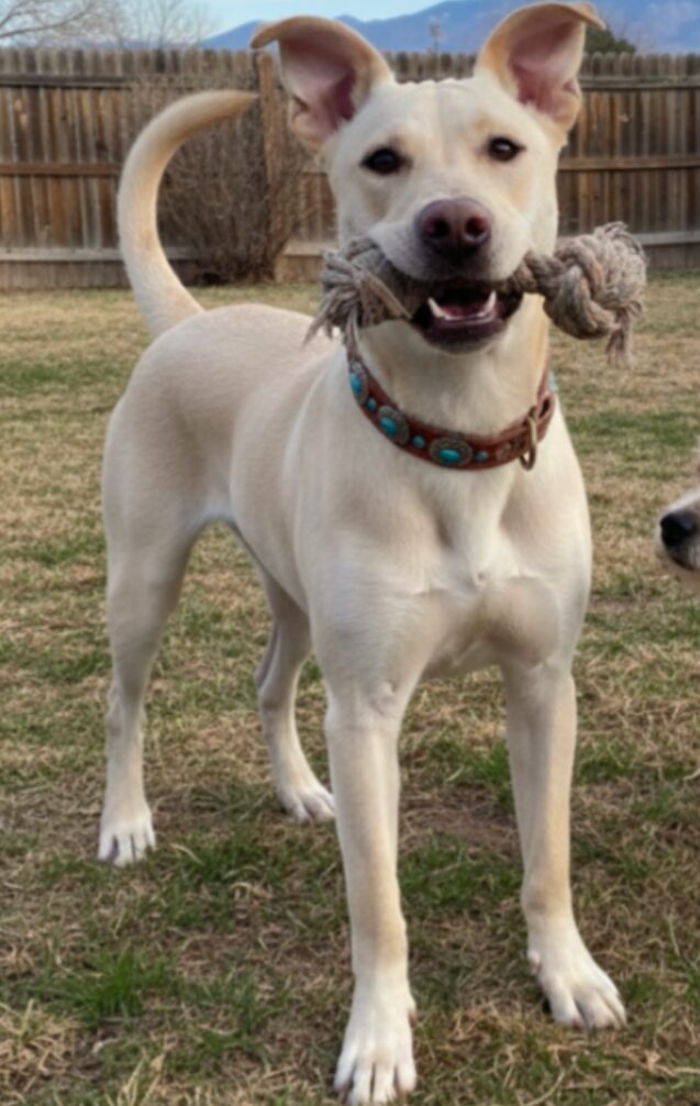 Harry is a happy, good-natured goofball who absolutely loves being around other dogs and people. He’s the kind of dog who brings joy wherever he goes — playful outside, naptime inside, and always ready to make you smile. His favorite things are dog friends, toys, and a cozy place to relax after a fun day. Harry’s adoption fee includes his neuter, vaccines, deworming, and microchip. He was born November 19, 2022 on one of the reservations we work with and has been growing into a confident, social boy in foster care. He’s crate trained and sleeps well through the night. Because he eats a little fast, he uses a slow-feeder bowl (an easy $10 solution), and he does great with routine. We believe he is a Lab, Cattledog, Chow and his middle name is ‘play’ ;-) Harry would thrive in a home in the Santa Fe, Albuquerque, Rio Rancho, White Rock, or Los Alamos area with another friendly dog who enjoys playtime as much as he does. If you think Harry might be a good fit for your family, please email desertpawsnm@gmail.com to check availability and start the application process. We’d love to introduce you and your dogs to this joyful boy and settle-in to his forever home.