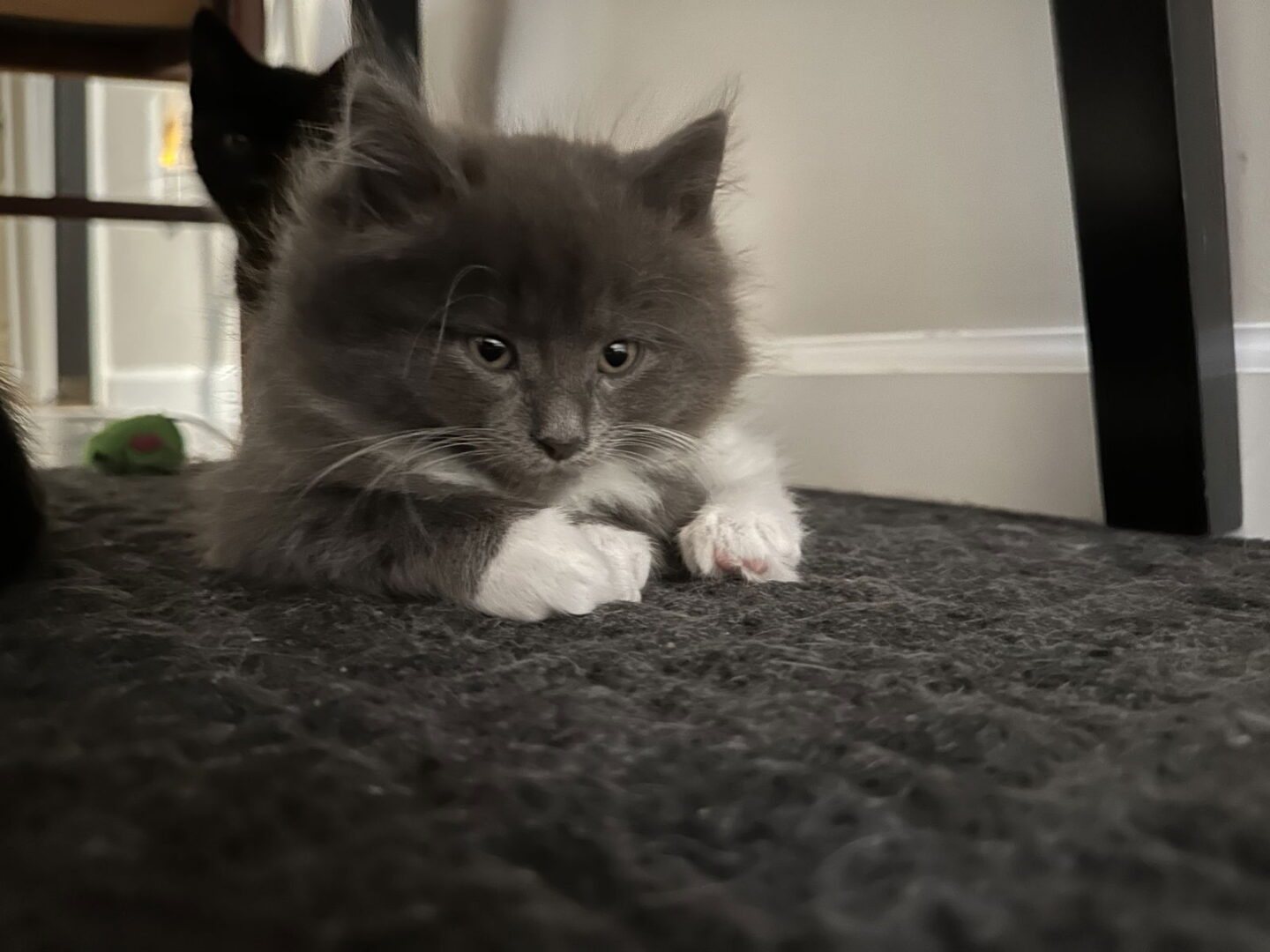 Hattori is gray and white male kitten who was born in rescue. Like any kitten, he is playful and loving. He currently has a very puffy, long coat, but he may end up with a shorter coat as he grows (his mom has a short coat). Hattori has had early exposure to a dog in his foster home, so he would be a great fit for almost any family situation. He will be ready for adoption after he is fixed during the first week of August. Hattori was born around April 17, 2025, and is currently being fostered in Bristol. Once he is fixed, up-to-date on shots, and has tested negative for FIV/FeLV, he will be ready for adoption. All of our cats and kittens are cared for in loving foster homes. "Meet and Greets" can be arranged only after an application has been submitted and approved. Applications for adoption can be found at our website at www.fosterandforever.org. Our volunteers do their best to respond within 24-48 hours.