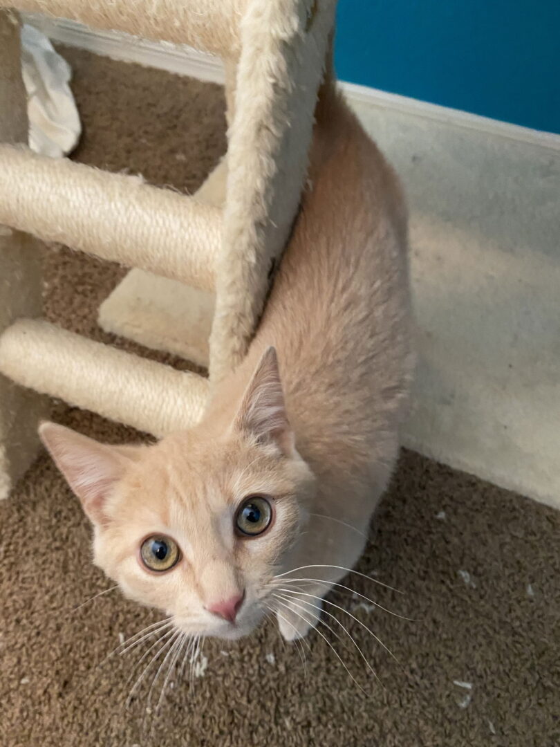 Hayden is your typical orange tabby, full of energy, very playful and talkative. If Hayden is being a little too much, re-direct him with a feather wand. He loves to lay against a wall and attack you as you walk by. Hayden gets very upset if he thinks he is alone. He will cry on and off the entire time. He needs to go to a home with another animal to play with and keep him company. Once Hayden is done playing, he loves to nap on his human. Hayden is not a fan of getting his nails cut but they grow fast and need to be managed often. Beware: Hayden will dart to an open outside door. He is a great candidate for harnessed walks around the block. This may prevent darting. We have a bird feeder outside our window, he enjoys sitting at the window and watching all the activity. Hayden is great with other cats, but has not been around dogs. Hayden is FIV/FELV negative, neutered, vaccinated, and micro-chipped. His estimated birth date is 10/25/2024 and his adoption fee is $180.