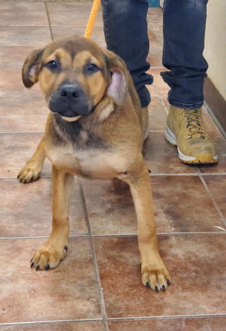 Hazel is a 5 month old (DOB: 10/15/2024) Black Mouth Cur/German Shepherd mix. She was surrendered along with her brother Red and her sister Caramel. The owner just had no space for so many dogs. Hazel is more of a dark brown and black in her coat coloring. She is good with other dogs, active and playful. She loves to play and be a bit feisty and lively. Hazel has had training on using a doggie door. Hazel likes children and adults. Come meet Hazel! Amarillo SPCA, 11901 S. Coulter. 806-622-0555.