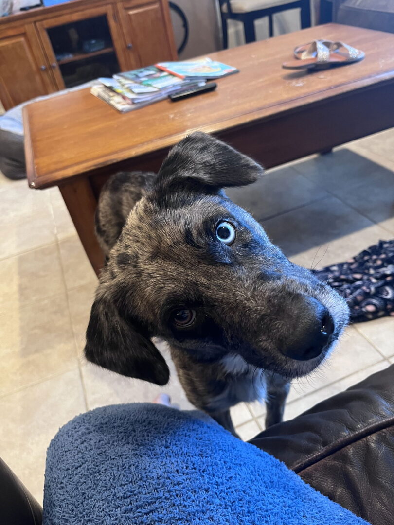 Hazel came to OPA from a local shelter as a very skinny stray momma with two adorable pups, Snowball and Diva. She knows basic commands like sit and no. She is very quiet unless you see an animal on your walk or you’re not taking her out to go potty. She does have two different color eyes. My husband and I both thinks she’s a fantastic dog and loves to be pet. She’ll stay beside you forever. She loves her people.