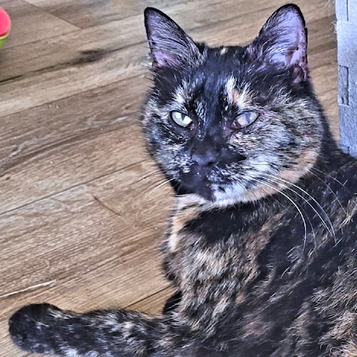 Hemlock is a spayed female tortoiseshell cat, born in April 2023. She has a sprinkle of catitutde and loves her humans. She enjoys pets, contently purrs and will curl up for love. Hemlock tolerates other cats but would do best as an only kitty in a quiet home. She gets overstimulated at times and should not be in-house with younger children. Indoor cat only! The adoption fee is $25. This covers the cost of spay/neuter, PVR, Rabies, flea, tick, ear mite and worm treatment. To adopt, you need to first fill out an application. Go to: https://rutherfordcountyhumanesociety.org/cat-adoption-application/ We are located in Western North Carolina. Optional transport is weekly. After your application is approved, we will contact you regarding cost and delivery if you so desire.