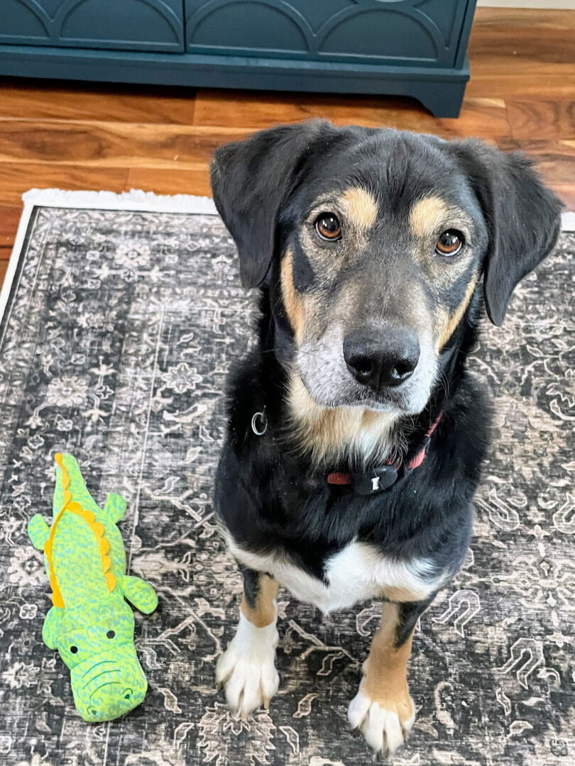 Meet Harold! Harold is a rottweiler mix who is estimated to be 5 years old. He is a pretty mellow guy but is always up for playing and chasing squirrels! He wants to be right beside his people at all times. He is eager to please, very food motivated, and will do just about anything when he hears his favorite phrase, "Do you want a treat?" At times, Harold can be fearful of new people and experiences. His foster family is helping him learn that people are safe, kind, and can be trusted, and Harold has come a long way. When he is scared or is startled he might bark, but if given the chance, he realizes there is nothing to fear and will warm up to people. Harold will need a family who is patient and willing to help him acclimate to new people/things/places. In return, he will be the most devoted, loyal, and loving best friend! Harold is a heartworm survivor, which means he will need to be on a heartworm preventative for the rest of his life – a once a month pill that he thinks is delish. Harold is house-trained, knows basic commands, loves walks, and is just an all-around good boy! He is good with other dogs when they are introduced slowly. He has been around children, but he is vocal and younger kiddos might be frightened of his barks. Harold is being fostered in a family with teenagers, which used to scare him, but now he knows that teenagers give really good tummy rubs! Every day, he is becoming more confident and learning that people are good. Harold can be trusted in the house, but he just cannot help himself when it comes to socks – he will eat them if given the chance, so his forever family will want to keep their socks out of reach! His adoption fee is $375 Put in an application at eapl.com
