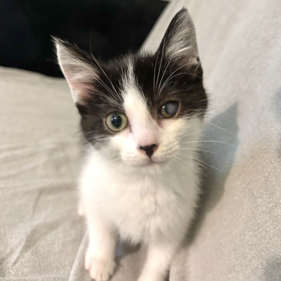 Hello! My name is Hocus and I'm the sister of Pocus. Together we make Hocus Pocus! I'm the more GENTLE and CALMER of the duo. I'm VERY AFFECTIONATE and I absolutely love to sit on your LAP and get PETS. You can even rub my belly (see the picture!). You may even notice that I start purring even before you pet me. I call it my "PREEMPTIVE PURR". When I see that you are about to pick me up or pet me, I just start purring from happiness. Oh I just can't help it! You may have noticed that my left eye looks a little different. Well – I was born on the cold streets of Chicago and I got an eye infection early on. My eye has since healed from the infection but some scarring remains. Don't worry though – I don't even notice it anymore and I still play and purr and love just like any other kitten – No adjustment needed! Plus – I think it makes me look a little badass. Oh, am I allowed to use that word here? Hehe. I'm a brave girl who has been through a tough start. So I can totally appreciate the good life now. And I certainly will return all the love I get. My foster thinks I'm just the SWEETEST kitten! But if I could have one more wish, it would be to have a forever home! A home to share with people I love (and maybe even my brother can come with?)! That would the best! I'll do well with children, other cats and possibly dogs (with slow intros).WE DO NOT HAVE A PHYSICAL LOCATION AS WE ARE A FOSTER-BASED ORGANIZATION. PLEASE SUBMIT AN APPLICATION TO BE IMMEDIATELY CONNECTED TO A SCREENER.Apply at online application (catsfff.org/adopt)View all of our adoptable cats here (catsfff.org/cats)Our adoption fees are listed here (catsfff.org/adoption-fees)