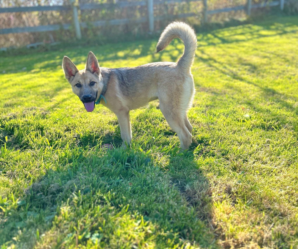 Holly is an 8-month-old Shepherd mix weighing about 47 pounds. She has been with us for about 3 months and is a very shy but loving girl. We’re working with Holly a lot to get her more comfortable and confident. She is a big cuddle bug but takes a bit of time to warm up to people. She gets along well with other dogs and loves to be outside playing.