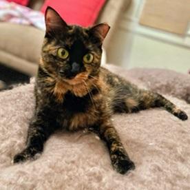 Hello! We’re Holly and Freda! We were rescued with our sisters from a backyard in San Francisco and we’re so glad to meet you. I’m a very sweet and a little chatty Tortoiseshell without the spicy “tortie” purrsonality. I’ll greet you at the door when you come into a room and be sure to stay close with a few rubs on your legs, ready for lots of head scratches and belly rubs! I love to play with you, and my favorite toys are the laser and the feather cat dancer. I can chase the laser around the room forever, and will show off my acrobatics for the feather cat dancer when it flies by. Lately I have added Peacock feathers to my list of favorite toys. I can’t resist Peacock feathers disappearing under a blanket! Laser chasing and DaBird play sessions will bring out my trust and confidence. I love spending time in the window watching the neighborhood go by and can’t wait to see yours! I have a streak of independence, but also get along well with my sisters and at times you’ll find me snuggled up with Freda at bedtime. I LOVE treats, especially churus, and will be the first in line when it’s treat time. I am in search of my forever home with a human looking for kitty love and will become your best friend and companion. I will be shy at first, but we’ll be playing and starting up the snuggling in no time. Please note:Holly should be adopted with a littermateIndoor only For more information & an online application go to https://www.givemesheltersf.org/adoption/cat.php?id=12165&ts=1737187351&src=rg