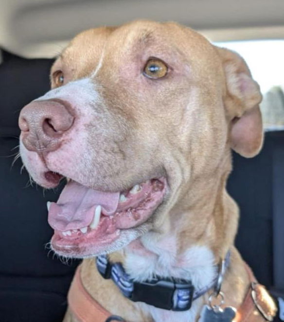 Age: 3 1/2 Years Weight: 50 lbs Good with dogs: Yes Good with cats: Unknown Good with kids: Yes Activity level: High Shedding: Medium Vocal level: Medium Training: Basic, Leash, Crate, Potty Trained (can hold it up to 4 hours. Will use potty pads if she must be left longer) Honey is a 3 1/2 year old pitbull mix who found her way to us after she was found by a Good Samaritan. She had a yeast infection all over her body, a UTI, and was starving. Multiple attempts were made to locate her owner however, they were all dead ends. Now, Honey is in a loving foster hom e and she is looking so much better! She is working on basic commands and walks well on a leash. Honey is truly just the happiest dog you could hope to meet and loves to play! You can't help but to smile when watching this silly girl play! Honey is truly the sweetest girl who is sure to bring joy to everyone around her!