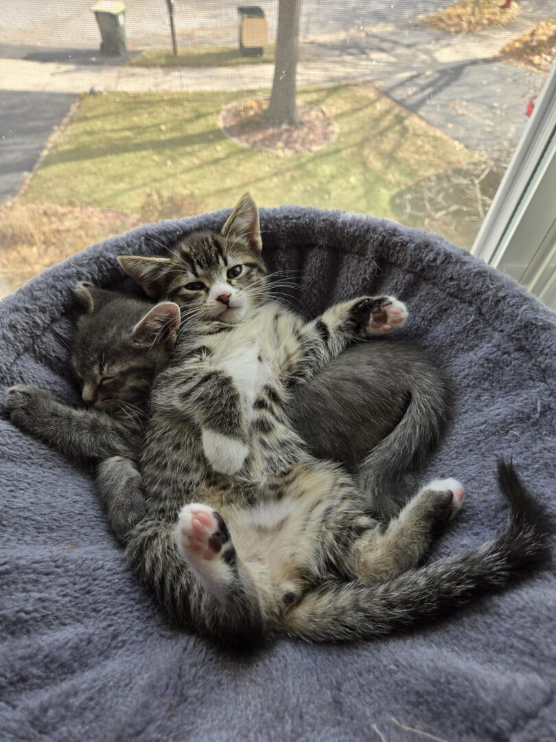 See Honey Crisp’s HomepageGo to our official websiteYou can fill out an adoption application online on our official website.Please contact BL for more information about this pet.Thanks for your interest in a pet from A.R.F.! If you see a pet here, they are still available for adoption and you should apply through our adoption application on our website at https://www.arf-il.org/adopt/application/ Honeycrisp is a Gray Tabby ,ten week old little girl with a coat like the crisp autumn air! This adorable gray tabby is all about fun and adventure, just like her namesake apple. With her beautiful swirling gray markings and bright, inquisitive eyes, Honeycrisp is a sweet and loving girl. She loves to wrestle and chase her siblings, Fuji and Macintosh. When she’s done playing, she’s quick to seek out a cozy lap or a warm blanket for a cuddle session and a well-deserved nap. Honeycrisp is a love bug who promises to fill your home with joy, laughter, and endless entertainment. She needs to have her sister or brother go home with her! We encourage you to consider adopting kittens in pairs! There are several reasons why Honeycrisp would do good with a friend, including: -Two kittens keep each other entertained – they will play and get all their energy out on each other in time for snuggles with you! -Having two kittens to play with each other prevents "I'm lonely and bored" behavioral issues. -Watching two kittens wrestle is quite possibly the cutest thing you will ever see. -The kittens will teach each other "how to cat" and learn to be more social with humans and people. -You'll save two lives instead of one! Honey Crisp is microchipped, up to date on all vaccinations, spayed, and litter box trained. Honey Crisp's adoption fee is $165. Please note A.R.F. does not approve applications for any kitten under 6 months of age to families that live outside of Illinois and/or beyond 100 miles of Wheaton or Glen Ellyn, IL. If you are interested in meeting Honey Crisp, please fill out our online kitten adoption application at https://www.arf-il.org/adopt/application/ today! Once your application has been approved, an A.R.F. volunteer will be able to contact you to arrange a meeting. Thank you for considering a rescue pet from A.R.F.-Animal Rescue Foundation! We are based in Wheaton, IL and conduct adoption events in the DuPage County area. If you are interested in adopting one of our pets, please submit an adoption application at https://www.arf-il.org/adopt/application/ Adoption appointments are scheduled based on the order of applications received, so submit your application early! Submitting an application does not commit you to any animal but does get you a head start with the adoption approval process. Due to a high volume of applications, we are often unable to respond to questions or schedule meetings until your application has been approved. More information about our adoption process can be found on our website here: https://www.arf-il.org/adopt/ As an all-volunteer, foster home-based organization, A.R.F. Animal Rescue Foundation does not have a facility where applicants can visit our animals. Please visit https://www.arf-il.org/events/ for a list of our upcoming adoption events. Thank you for choosing to adopt, not shop!