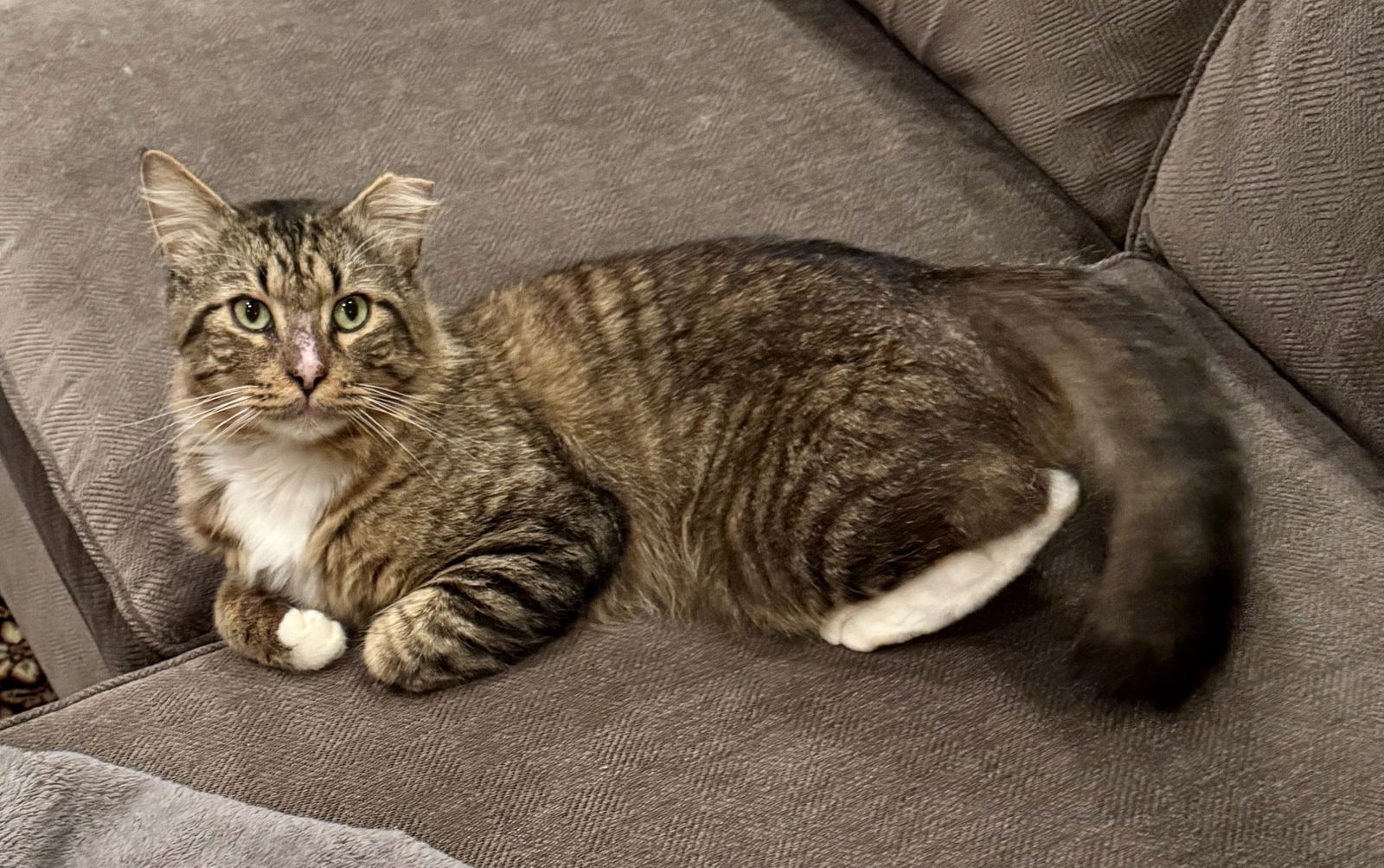 See Howie’s HomepageGo to our official websiteYou can fill out an adoption application online on our official website.Super friendly tabby and white adult male with medium long hair about 3 years old. He is neutered, tested for Fiv/leukemia and current on all shots. He is easygoing, very affectionate, playful and likes a lot of attention. Howie gets along very well with dogs, cats and would be great with children. Super loving!