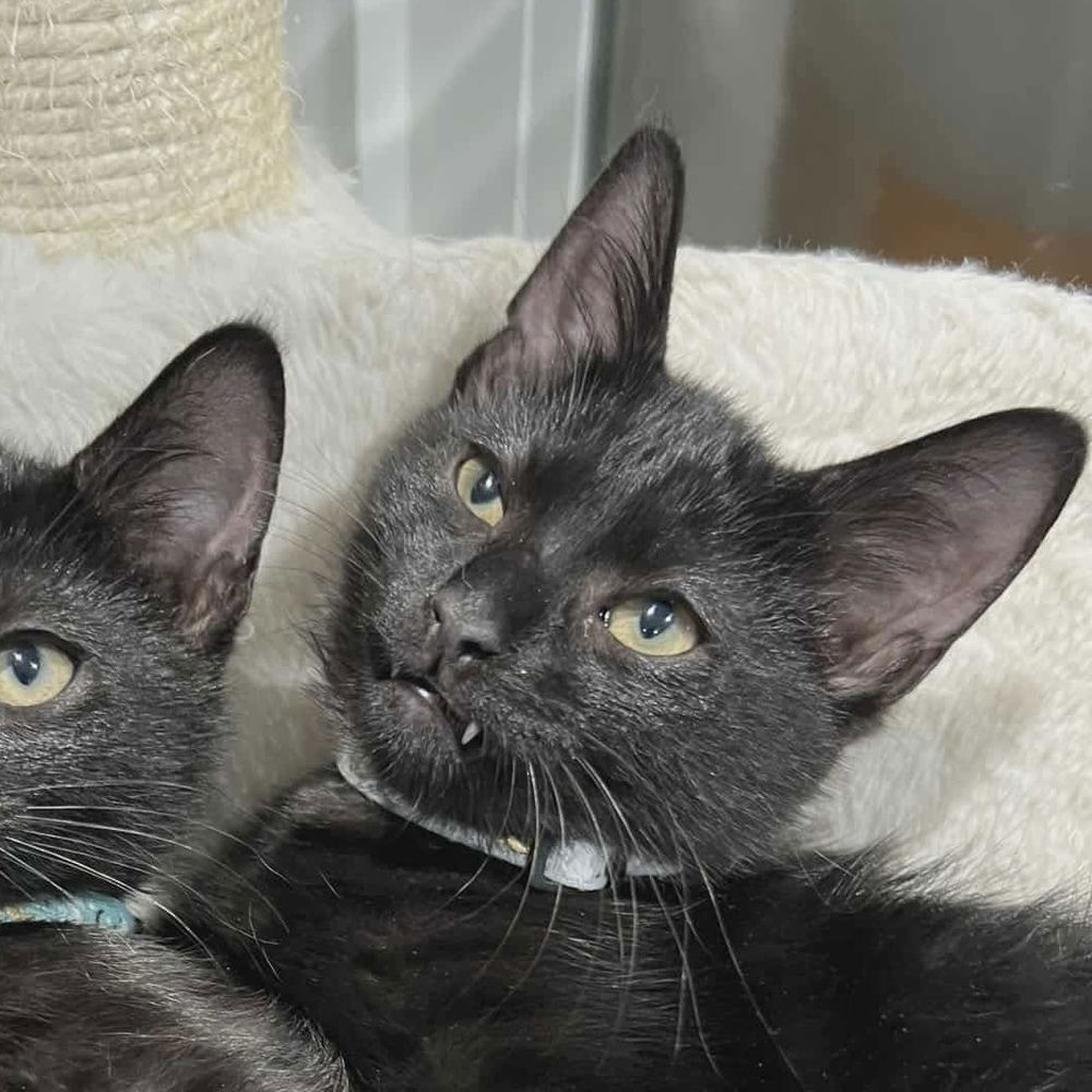 Jade – The Chunky Lap Lover Jade is the big brother of the crew, and he wears that role proudly! He’s a chunky, handsome boy who is almost a pound heavier than his smallest sibling, and his love of food might just explain why. With his mouth full of “shark teeth” and his little fangs often poking out, he’s both adorable and a little goofy-looking in the most endearing way.Because he’s still a kitten, Jade will need to be adopted into a home with another kitty friend to play and cuddle with. He would especially love to go home with his best friend and sister Topaz, he loves her so much! But he’ll thrive in any environment where there’s plenty of love and companionship.Despite his big-boy size, Jade is a total lap cat. He loves to curl up in your lap and soak up all the pets and snuggles he can get. Between meals, he enjoys chasing toys, wrestling with his siblings, and cuddling up for a nap.Jade is the perfect mix of playful kitten and gentle cuddle bug. With his big personality and even bigger heart, he’s sure to bring endless joy and laughter to his forever family.WE DO NOT HAVE A PHYSICAL LOCATION AS WE ARE A FOSTER-BASED ORGANIZATION. PLEASE SUBMIT AN APPLICATION TO BE IMMEDIATELY CONNECTED TO A SCREENER.Apply at online application (catsfff.org/adopt)View all of our adoptable cats here (catsfff.org/cats)Our adoption fees are listed here (catsfff.org/adoption-fees)