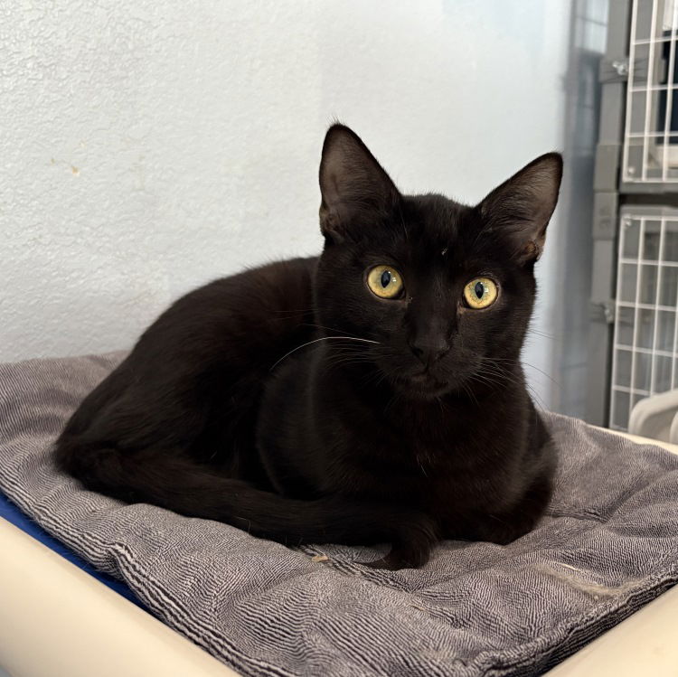 Hi, my name is Jake the Snake. I have sleek black fur and big yellow eyes. I was born on a cottage farm in their barn and brought to Wild Blue when I was about 4 months old. I've spent the last few months in foster, and now I'm an indoor only kitten. I love warm beds, shiny toys, and chasing and playing with the other kittens and cats, til its time for a nap. I'm shy. If you pick me up, I'll melt into your shoulder and purr when you pet me, but I might not initiate the contact. I'll need patience getting to know someone new. I'm very sweet and need to find my family. I'd love a home with other cats to play with. I've never been around dogs, but with careful slow introduction, I should be okay. I am negative for FELV, up to date on my vaccinations and been dewormed. Please note: kittens may NOT be adopted as a Barn Cat nor be outdoors unsupervised as they are too young to know how to protect themselves.