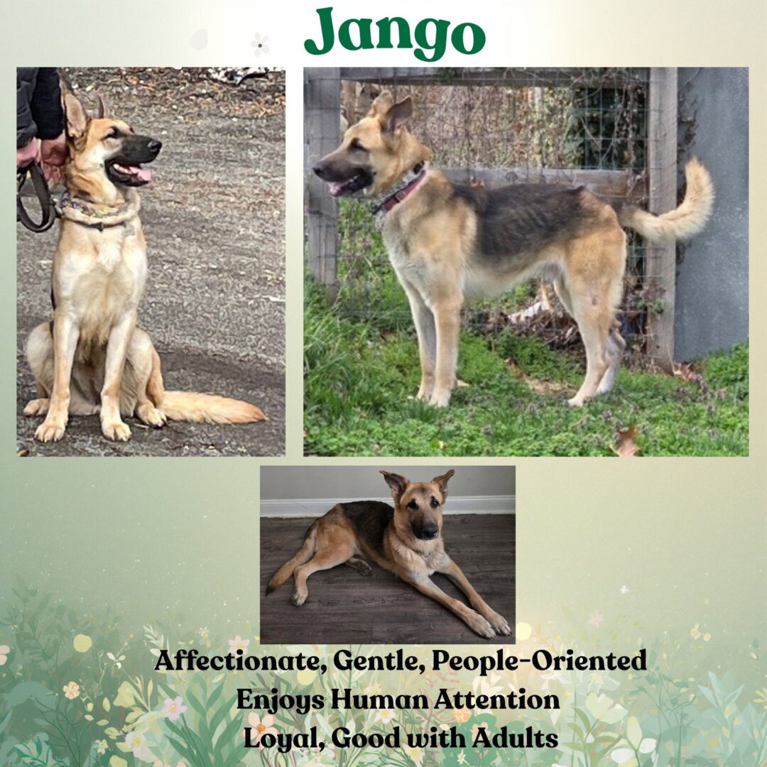 See Jango’s HomepageGo to our official websiteYou can fill out an adoption application online on our official website.Jango is a large-boned, handsome German Shepherd with a big presence and an even bigger heart. Despite coming from an overcrowded shelter, where little was known about his past, one thing is already very clear—Jango is affectionate, gentle, and people-oriented. Right now, we’re still learning more about Jango as he settles in and decompresses from the stress of shelter life. What we do know is that he enjoys human attention and leans in for affection, reminding us why we love this breed so much. Jango deserves the chance to show who he truly is once he’s in a calmer environment with consistent care, structure, and love. As we get to know him better, we’ll continue to share updates—but we suspect there’s a wonderful companion waiting to shine beneath that shepherd exterior. If you’re looking for a solid, loyal German Shepherd and are willing to be part of Jango’s next chapter, he may be the dog you’ve been waiting for. More to come as we learn more about this sweet boy. you have not yet completed our Application process, please complete our Adoption Application at www.allshepherdrescue.com. Our Adoption Fee is $350.00
