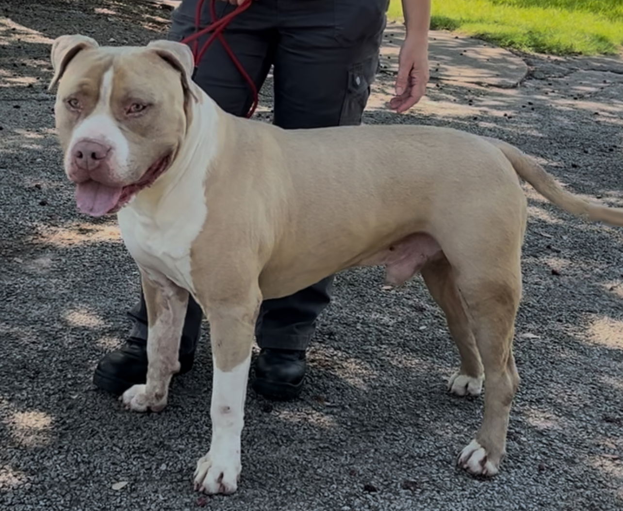 Jax is a strong, muscular dog, needing an owner willing to continue his current training. He's very eager to please, focusing on his person for direction and the next command. He learns fast. He's also got a goofy side to him ,tossing toys in the air, rolling on his back in the grass with delight. A dedicated responsible adopter will have a very loyal companion in Jax to spend many enjoyable years together.