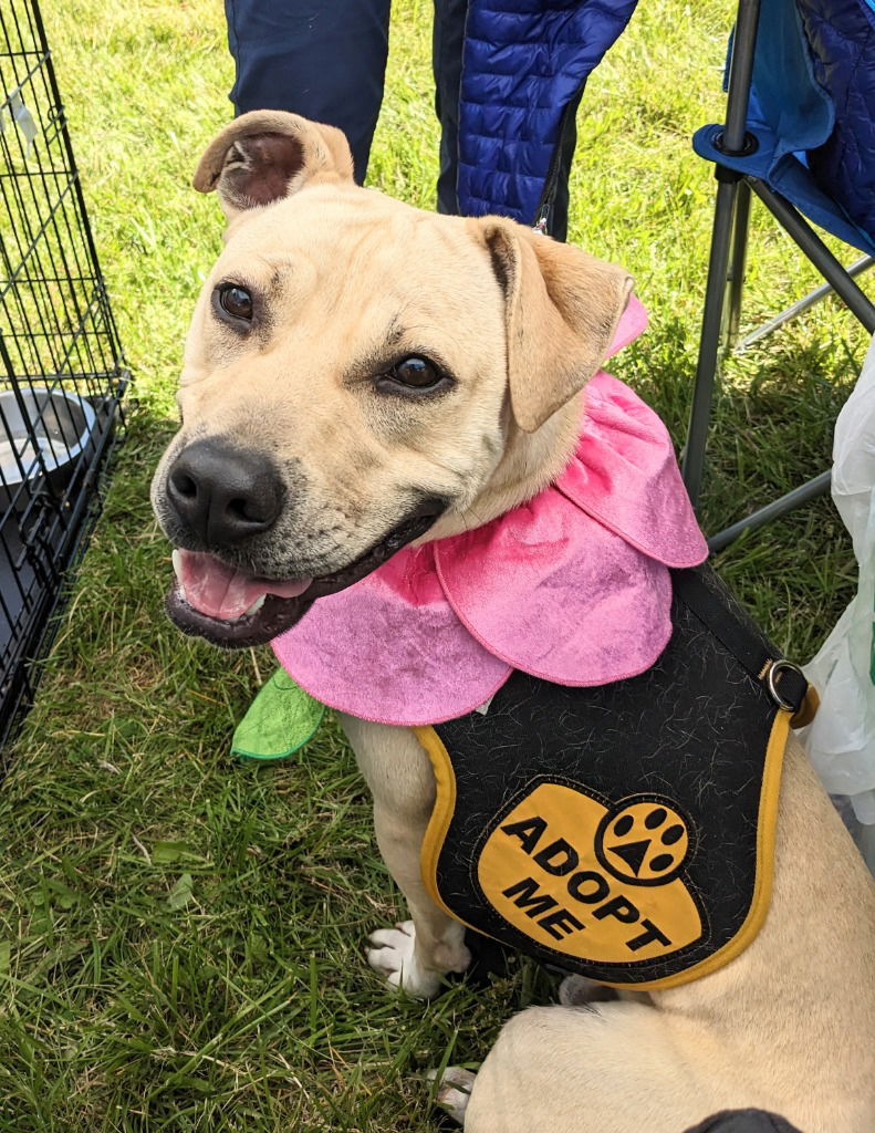 See Jaxson’s HomepageGo to our official websiteYou can fill out an adoption application online on our official website. Four-year-old Jaxson thought he was just being a freewheeling venturer before getting picked-up for being unlicensed. No one claimed him, so we gave him a place to wait until he finds a home. While he has been with us, he has been neat in his room, and wriggles with delight when anyone stops to give him some love. We’ve got a serious tail-wagger here. This compact (40 pound), muscular dog is all set to learn what is expected of him. He has already learning to sit when directed and also to wait before a door is opened. When asked, he behaves well while on leash walks. He seemed to want to play with dog-curious kitties, but he could be overwhelming for some kitties.. Jaxson is the clean-cut yellow of a Labrador. And by the look of his charcoal lips, he may have some Black-mouth Cur (Old Yeller type dog) in his bloodline. We don’t know his mix for sure, but we know for sure that he is smart and good-looking.*update: on a recent outing to a lake– Jaxson was perfect in the car and didn’t blink an eye at the noisy pond geese. But, he couldn’t get enough of meeting new people. Loving people is his favorite pastime. Jaxson always seems to look on the bright side of things. Bring him into your life to see the world from his optimistic viewpoint.