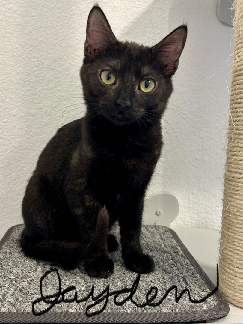 All of our cats are current on vaccines, combo tested (FIV/FELV) , spayed/neutered, microchipped, given rabies vaccine as age appropriate, flea treatment and dewormer as needed Jayden ~ Female ~ ID #HFL137-24 (LIZ) ~ DOB 10/1/2024 Meet Jayden, a petite, shiny black kitten with a big heart! Jayden was rescued by Cat Matchers and was a bit cautious and shy at first, but in her foster home she has warmed up and shown her sweet, friendly and playful side. She now loves a gentle back rub and head scratches. Jayden loves playing with her siblings Shiloh and Marley, chasing toy mice and batting around little balls. She also enjoys playing with interactive toy wands with humans. One of her favorite things to do during the day is sit on the cat tree and look out the window. Jayden is waiting for the purr-fect forever home where she can feel safe and loved.**Want to adopt? Get started here: https://catmatchers.org/adoptions/adoption_application_page/ **Do you or someone you know want to help in saving cats' lives? Become a Foster Parent! We are ALWAYS looking for more people to become qualified Foster Parents. For more information on the Foster Program or helping in other ways, click here: https://catmatchers.org/volunteer/ You CAN make a difference!!!! **Not quite ready to adopt, but would like to donate to the care of this or other animals during their temporary stay with Cat Matchers? Visit this link: https://catmatchers.org/donate/ Follow us on Facebook, Instagram, Twitter: @CatMatchers