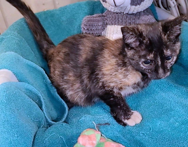 Jeanie is a bottle fed dark calico female, born on September 24th, 2025. She is very sweet, affectionate and loves attention. She is very playful and litter box trained. She is great with other cats and small dogs. Litter mates are Jenna, Charish, Mimi, and BearyQ. Indoor cat only! The adoption fee is $75. This covers the cost of spay/neuter, PVR, Rabies, flea, tick, ear mite and worm treatment. To adopt, you need to first fill out an application. Go to: https://rutherfordcountyhumanesociety.org/cat-adoption-application/ We are located in Western North Carolina. Optional transport is weekly. After your application is approved, we will contact you regarding cost and delivery if you so desire.