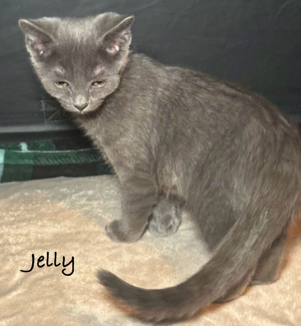 This girl is so loving. Head butts and purrs is how she shows affection. She loves running around chasing toys and wrestling with her brother Peanut Butter.