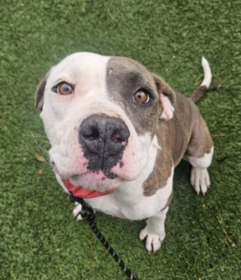 Meet Jelly — the sweetest little house hippo you’ll ever meet! With her adorable pittie grin, soulful eyes, and gentle spirit, Jelly has quickly become a staff favorite and everyone’s go-to cuddle buddy.Jelly arrived as an unclaimed stray, her body covered in old scars — but her heart? Pure gold. Despite everything she’s been through, she remains endlessly kind, gentle, and full of love. She adores people, loves other dogs, and greets them with soft kisses and happy tail wags. She even enjoys cuddling up with her dog friends for naps — true to her land seal nickname. This sweet girl walks beautifully on leash, seems potty trained, and is food motivated (which makes her easy to please and fun to train). She’s low-energy and loves nothing more than lounging around, snuggling close, and soaking up affection from her favorite humans.With her sweet smile, dainty personality, and “kiss cam” worthy charm, Jelly is truly one of a kind — the sweetest Jelly around! She’s ready to leave her past behind and find a forever home full of soft blankets, kind hands, and endless love. Jelly was rescued from a shelter in New Mexico.Meet and greets are by appointment only. An approved application is required to schedule a meeting. Check out our events page for upcoming open adoption events!We have no additional back story or update for this dog at this time. When we do, it will be updated here. This is all the information we have currently. Approved Applicants may make the adoption fee payment by clicking donate above. Partial adoption fees will not hold a dog. If upon meeting the dog of your choosing at your scheduled pickup time you find that you aren't a good match, your deposit will be fully refunded. Adoption fees include vaccines up until time of adoption, microchip, spay/neuter and 1st 30 days of free pet insurance. We are not affiliated with MetLife pet insurance. (you have to sign up for the insurance or it will not go into effect). Adoption fees help cover the medical care of the animals while he or she waits for a new home, as well as food and transportation costs. These fees help to provide care for the other animals in the shelter or rescue group who may have medical bills that are much higher than any possible adoption fee. The money also acts as a donation to help support the organization as a whole, allowing the group to continue its efforts to rescue and rehome pets. The dogs in our care are fostered in Colorado, Texas, and New Mexico. While all dogs are picked up during our scheduled times, sometimes transport dates change due to unforeseen circumstances. More questions? Read our FAQs here: https://4p4l.org/faqs/ Breed labels are a "best guess" by a shelter veterinarian and cannot be guaranteed.