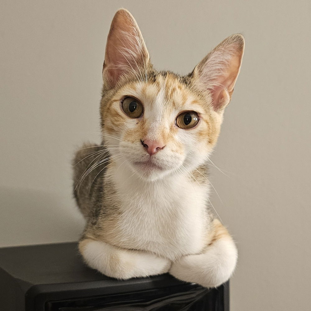 Jelly is an absolute love, whether perching on her foster mom's shoulder like a monkey, snuggling under the covers to keep her human company, getting lots of pets or lovingly grooming her siblings, she's all about caring! And who can resist her unique markings and adorable face! She loves both playing, climbing and discovering new nooks and crannies, then settling down for a relaxing nap! She enjoys playing with her siblings as well as batting around little stuffed toys, balls and wands. Jelly should thrive in any environment with a family who's willing to provide her with feline and human companionship. She should do well with gentle children. In fact, she would love to go to her forever home with her best buddy and brother, Marshmallow(or another sibling- Boba, Sprinkles or Pudding). If that's not possible, then as long as there's a slow, thoughtful introduction, she can go to a home with a young resident cat. Additionally, she has been exposed to dogs, so she should do okay with a cat-friendly dog as well. If you are looking for a delightful furry companion who will snuggle with you under the blanket, perch on your shoulder like a little sidekick, and fill your home with joy, Jelly is the perfect match for you! Adopt Jelly today and let her brighten up your life with her charming personality. "WE DO NOT HAVE A PHYSICAL LOCATION AS WE ARE A FOSTER-BASED ORGANIZATION. PLEASE SUBMIT AN APPLICATION TO BE IMMEDIATELY CONNECTED TO A SCREENER.Apply at online application (catsfff.org/adopt)View all of our adoptable cats here (catsfff.org/cats)Our adoption fees are listed here (catsfff.org/adoption-fees)