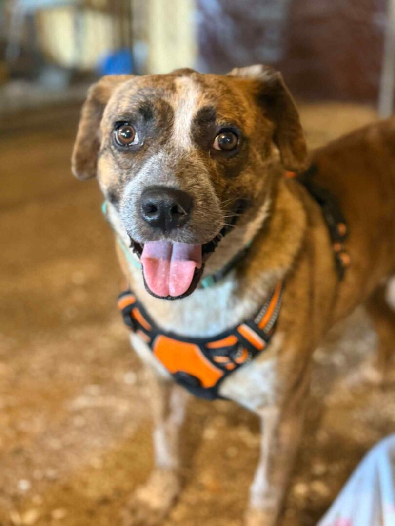 See Jenny’s HomepageGo to our official websiteYou can fill out an adoption application online on our official website. Personality: Jenny is sweet, loving, and very affectionate once she feels safe and she will be a great choice for someone looking for companionship. She can be shy at first, but with patience and gentle encouragement, she blossoms into a playful, loyal companion. At Mikey & Me, she surprises everyone with her spry, sassy side when playing with younger dogs. Her perfect day? A little playtime followed by cuddling on the couch—she’s a true Velcro dog! Ideal Home: Jenny will thrive in a calm, consistent, more serene home environment. We’re looking for a person or family that’s willing to work with us on placing Jenny into a home slowly, making sure she’s not afraid. We’ve done this with other timid dogs with tremendous success. Other friendly pets are a bonus, but she’ll do fine with scheduled social time if she’s the only dog. She naturally gravitates toward women but warms up to men very well with time and trust. A home with dog-savvy kids over 12 would be best, as sudden activity might startle her. Health, Care, & Appearance: • Needs moderate daily exercise (and a little help shedding a few pounds!) • Fully Vaccinated, spayed, and microchipped • A gentle face, soft fuzzy coat, and stunning brindle stripes with merle spots Location & Adoption Info: Apply to meet Jenny by submitting an adoption application to happydaysdogandcatrescue.org . Jenny is currently be fostered at Mikey & Me in Chelsea, MI. Happy Days Dog and Cat Rescue microchips all dogs and cats before adoption. Microchips are implanted between the shoulder blades and are another form of identification should the animal get lost. The microchips are registered to Happy Days Dog and Cat Rescue. The adopter's information is added once the adoption is complete. The adopter is responsible for a $19.99/Year registration fee or a $45.00/Lifetime registration fee to change information. Dogs and Cats still need to have collar with tags should they get lost.