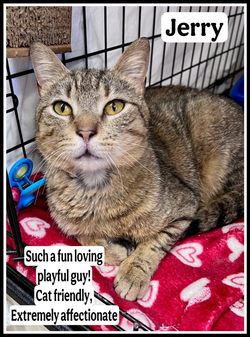 Affectionate and Playful!!! Meet Jerry! This sweet boy was spotted by one of our dedicated foster volunteers along the side of the road, looking like he was just waiting for someone to notice him. When she stopped, Jerry came right over—hungry, crying, and clearly in need of help. He had a mild cold and was very underweight, but with a little care and love, he’s now feeling so much better. Jerry has shown himself to be incredibly affectionate and trusting, grateful for every bit of kindness he receives. He’s ready to leave his rough start behind and find a forever home where he’ll be safe, loved, and cherished. Fun loving, enjoys chasing toys Jerry also loves to play with other cats and is known to frequently wrap himself under a blanket, burrito style. Please check out his video: https://www.youtube.com/shorts/6r4rhyb9WWE . If you’re looking for a loyal, loving companion, Jerry is your guy. Please submit our no-obligation Adoption Application for a meet and greet or to adopt: https://forgottencats.org/adoption-application/. Not ready to adopt? Please consider fostering: https://forgottencats.org/foster-a-cat/. Thank you! (Foster: Willow Grove)