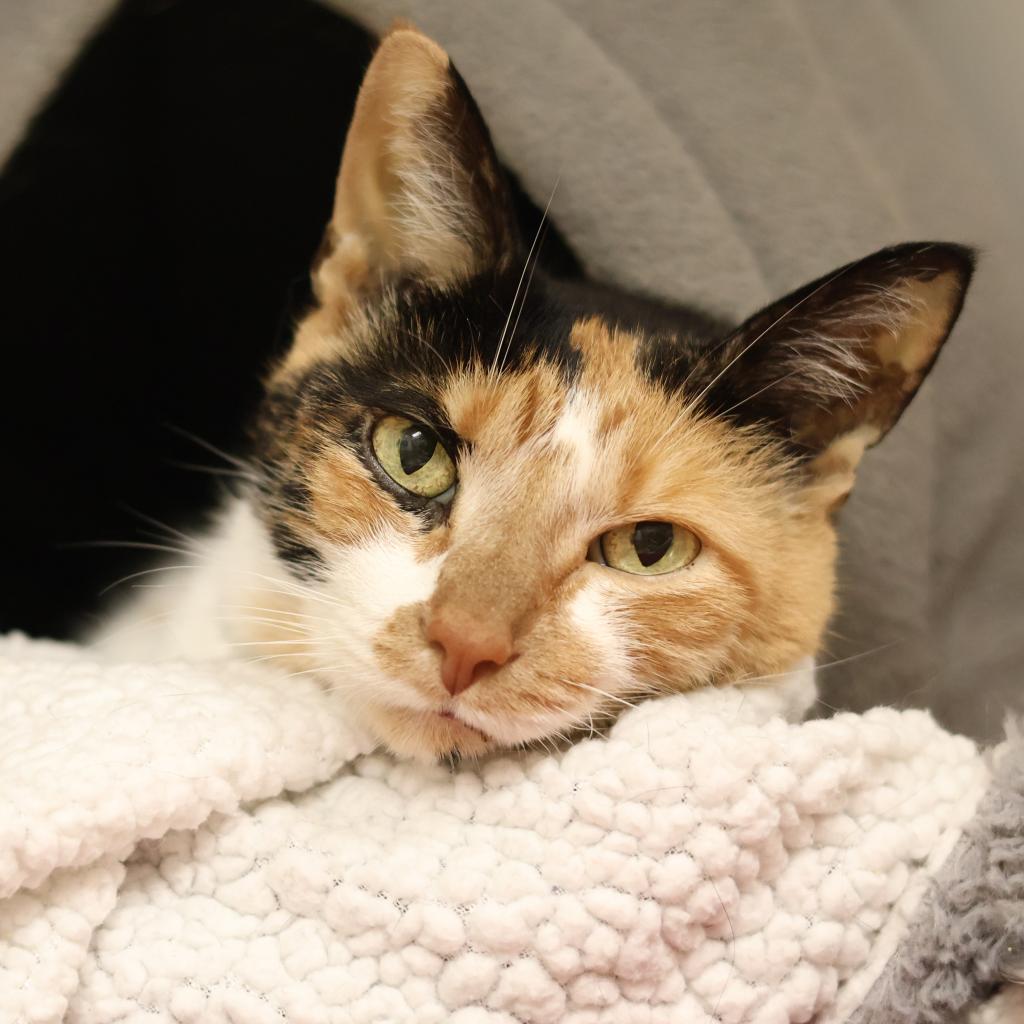 Jet is just a big, sweet, cuddly, mild-mannered potato. f you’re looking for an easy-going and affectionate companion for a quiet life, this is your girl. Jet spends most of her time sleeping but prefers to do so as nearby (or on top of!) her human as possible. She loves people and is super sweet and affectionate with everyone she meets. She will reward scritches, being brushed, and any general attention you might give her with plenty of purrs, head butts, and loving gazes. She’s such an easy, lovely cat–with a beautiful calico coat. Jet has persistently elevated liver enzymes in her bloodwork that led to jaundice. She’s on two medications (liquid, given once daily) due to said liver enzymes and, while still a little elevated, her liver levels in her bloodwork are improving gradually! Jet takes her medicine extremely well and her foster has never had any issues (she's not much for struggling!). In a previous foster home, Jet was a little stressed out by more lively resident cats. She’d likely do best in a calm home as a single cat or with other low-key pets such as herself. Jet will go home with a THREE MONTH CARE PACKAGE including her medication! Age: 10 years How I came to PAWS: Owner surrender Animal ID#: A52442 ​I am not at the shelter. Please email adoptions@phillypaws.org to learn more about me! _____________________________________ To adopt a cat, complete the application at phillypaws.org/catapp. To adopt a dog, complete the application at phillypaws.org/dogapp. To adopt a small animal, complete the application at phillypaws.org/small-animal-adoption-application. Please reference this animal's ID NUMBER when inquiring. Learn more about PAWS' adoption process, locations, and more at: phillypaws.org/adopt/info. __________________________________________ Adoption fees for cats and dogs include age-appropriate vaccinations, spay/neuter, and microchip. Adoption fees are as follows, plus tax: $150 for large adult dogs (older than 1 year); $250 for small dogs (under 25 lbs) and all puppies (under 1 year); $60 for adult cats (over 6 months of age), $100 for kittens (under 6 months of age), and $25 for small animals. When you adopt a pair of kittens together, the total adoption fee is $150. PAWS, the Philadelphia Animal Welfare Society is a 501(c)3 non-profit animal rescue organization dedicated to saving Philadelphia's homeless and at-risk animals. PAWS is the city's largest rescue partner and provider of low-cost, basic veterinary care. Through our adoption locations, special events, and network of foster homes, PAWS finds loving homes for thousands of animals every year. PAWS is working to make Philadelphia a no-kill city where every healthy and treatable pet is guaranteed a home. Please visit www.phillypaws.org for more information on adopting, fostering, volunteering, or donating.