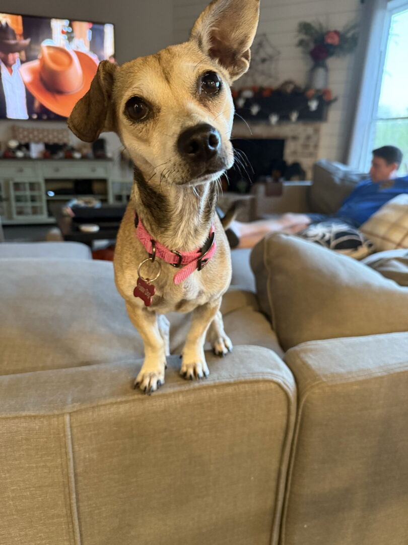 Jewell is a cuddle bug who wants nothing more than to be curled up next to you on the couch or in your bed. Jewell LOVES people – all people of every shape, size, and age. She lives in a foster home with dogs of all sizes and even a cat. She especially loves wrestling and playing with her brother Aggie Jewell is completely house and doggie door trained. She can be a little mischievous, but is always very eager to please. She is heart worm positive and has started her pretreatment regime. The rescue will cover the costs of his heart worm treatment as part of her adoption fee. If you are looking for a sweet, loyal, and extremely affectionate companion – look no further than Jewell!