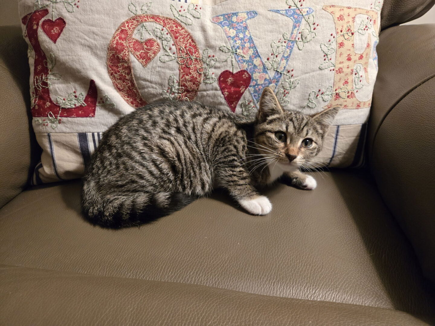Meet the Cats of Gettysburg at the Kitty Corner by Forever Love Rescue SHY BUT SWEET Meow! My name is Joanie. My estimated date of birth is 9/5/2024. I can be a bit timid when first meeting new people, but warm up fairly quickly after a couple gentle pets. I get along well with other cats, and love my foster friend Jake. My foster family is working on getting me more used to being held, and I am making great progress. I am still in a foster home, but meetings with me can be easily arranged.Meet the #CatsOfGettysburg – Apply to adopt at bit.ly/AdoptFLR and we will help you find the purr-fect kitty for your family! Visit dozens of our adoptable cats and kittens at our Kitty Corner adoption center 39 Queen St in historic Gettysburg PA on any Saturday or Sunday from 11am-3pm. All of the cats listed are located in or near Gettysburg unless otherwise noted. Please note that while we work hard to keep our available cats up to date we also have many that are not posted yet. Adoption fees are $60 for adult cats and kittens over 6 months old, $100 for kittens (under 6 months) and $30 for senior cats (7 years+) to help cover vet bills for spay/neuter, basic vaccinations, testing, microchips and preventatives. No cat will be officially adopted without being spayed/neutered and vaccinated (unless there are health risks in doing so). We highly recommend adopting kittens in pairs and we do discount for double adoptions here to encourage it. We are always in need of donations to help us continue to save hundreds of cats and kittens every year. Visit bit.ly/DonateFLR for more info. Be sure to check us out on Facebook at bit.ly/KittyCornerFB and "LIKE" our page and share our posts! SAVING ONE CAT MAY NOT CHANGE THE WORLD…BUT FOR THAT ONE CAT, THE WORLD CHANGES FOREVER!