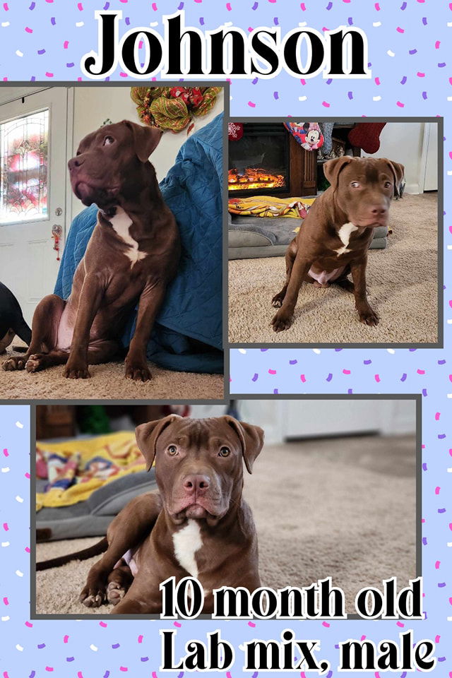 My adoption fee is $250 which covers my annual distemper booster, rabies, and being spayed/neutered and microchipped. Johnson is very good with other dogs. He definitely knows how to sit for treats. He will go in the kennel but doesn't like it. Johnson is completely potty trained but in a new home he might have an accident until he learns your routine. He walks well on a leash. This boy loves toys and cuddles. He is a very rambunctious puppy and loves to please his hoomans.