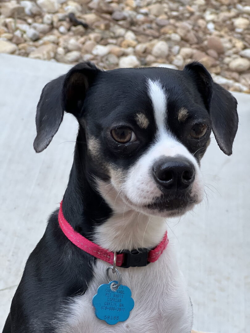 Meet JoJo , the 3 ½ year-old Boston Terrier Chihuahua mix with the sweetest personality. JoJo is a lover of cuddles and hugs and with his deep brown eyes that look right into your soul you just can’t resist hugging him. Weighing just 14 lbs. , this sweet and gentle soul is the perfect size, and he truly embodies the spirit of a loving companion. He is crate and potty trained . He is food motivated so training him is a breeze . JoJo is a mild-mannered little guy, and he enjoys car rides . He is happy to tag along on any adventure with you. JoJo is good on a leash so taking walks with him is easy and fun. Whether joining you for a car ride or curling up for a quiet afternoon, JoJo is happiest right by your side. JoJo would be fine as an only dog, but he also gets along great with all the dogs in his foster home. Ready to meet your new best friend? JoJo is waiting to be your forever cuddle companion. Visit ruffredemption.org to complete an application. All Ruff Redemption Dogs are spayed/neutered and microchipped prior to adoption. They also receive a minimum of two distemper/parvo vaccines, medication for the treatment and prevention of intestinal worms, and monthly heart worm/flea prevention while in our care. Rabies vaccines are given if the dog is 16 weeks of age or older.