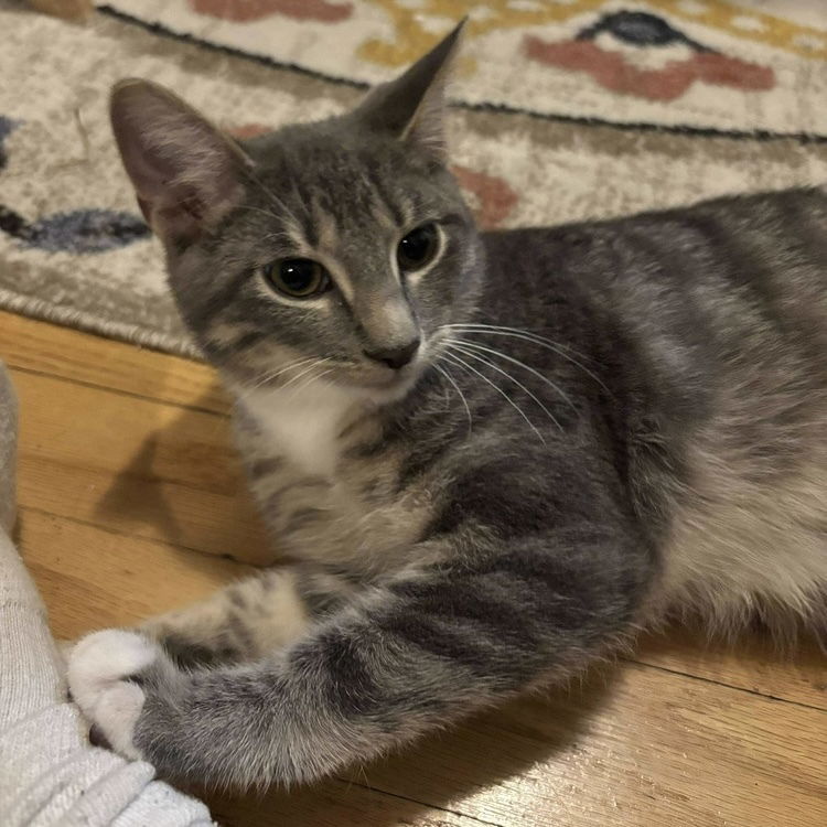 Meet Jornathan – The Playful, Chirpy Little Gentleman in White Socks! Jornathan may have started out as the runt of his litter, but he’s grown into a healthy, confident kitten who’s kept up with his brothers like a champ. Now he’s ready to walk his adorable white socks straight into his forever home! This handsome gray tabby is the most playful of his siblings, always chasing after wand toys and pouncing with kitten enthusiasm. While he’d rather romp and play than sit in a lap (at least for now ), his fun-loving nature is guaranteed to keep you smiling.Jornathan is also one of a kind — the only short-haired kitten of his litter and the chattiest one, too! After a good meal, he loves to strut around the room, chirping proudly to let his foster mama know just how much he enjoyed it. Sweet, well-socialized, and full of personality, Jornathan is ready to bring joy, laughter, and playful energy into his new home. Whoever adopts him will be gaining a spirited little companion with plenty of love to give. WE DO NOT HAVE A PHYSICAL LOCATION AS WE ARE A FOSTER-BASED ORGANIZATION. PLEASE SUBMIT AN APPLICATION TO BE IMMEDIATELY CONNECTED TO A SCREENER.Apply at online application (catsfff.org/adopt)View all of our adoptable cats here (catsfff.org/cats)Our adoption fees are listed here (catsfff.org/adoption-fees)