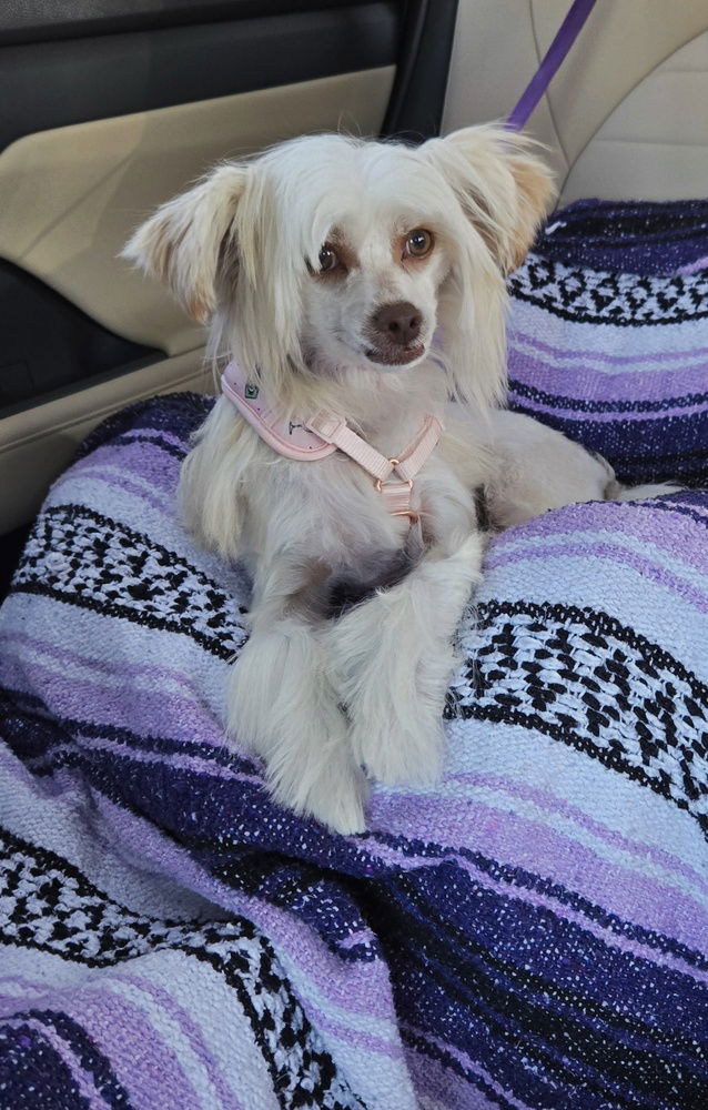 **ALL ADOPTIONS INCLUDE A HOME VISIT, YOU MUST LIVE IN BROWARD & PALM BEACH COUNTIES** Meet Josie Quinn – A Whimsical Powder Puff of Joy! Say hello to Josie Quinn, a bouncy and joyful 9-month-old Chinese Crested Powder Puff (full coat) with a heart as soft as her hypoallergenic coat. Weighing in at 11 pounds, Josie Quinn is the very definition of a cheerful companion—her energy is light, her spirit is sweet. A favorite thing is meeting people on the walk who tell her how stunning she is!Her toys are more than just playthings—they're her pillows, her pacifiers, and her treasures. Josie Quinn will happily prance around with her favorite ball in her mouth, beaming with pride and inviting you to smile with her.She sports a beautifully groomed traditional Chinese Crested style coat and is considered hypoallergenic, making her a great option for those with sensitivities. Josie is also cat friendly, loves to play with other small dogs, and would thrive in a home where someone is around often to interact, play, and shower her with affection.Still a puppy at heart, she’s mostly potty trained and learning quickly—she’ll just need a patient and loving family to help her settle into a routine. She’s social, curious, and would enjoy little outings to experience the world with her people.Josie Quinn is a whimsical little joy looking for a forever family to cherish her, laugh with her, and offer the consistency and love every pup deserves. Josie is ready to bring the magic. Her adoption fee is $650 to go towards her vetting (vaccines, spay/neuter, heartworm/Ehrlichia/Lyme test, fecal test, pre-op blood work, dental cleaning, and microchip as well as grooming if needed). If you are interested please fill out the adoption application For additional information regarding our adoption process, please check our FAQ's Page. *All dogs in the care of Get a Life Pet Rescue live in loving foster homes while waiting for their perfect match. They don't live in cages or crates (unless there is a medical reason to do so.) They are treated as family pets while in our care. * All dogs in our care are fed premium brand holistic food as well as supplements and vitamins specific to each dog's needs. We don't buy inexpensive bulk dry kibble, our rescues are fed premium wet food diets as part of a comprehensive rehabilitation program to ensure maximum health. .*All of our rescues receive complete quality vetting including full dental cleaning with pre-op bloodwork, spay/neuter, vaccines, and grooming. Dogs in need of specialized medicine will be seen by specialists, such as full cardiac workups, and ophthalmologist visits, all suspicious lumps, and bumps are biopsied, and every medical need is transparent to potential adopters. *Once you adopt from Get a Life Pet Rescue, you become part of our compassionate family and we are here for you if a problem with your precious dog arises.