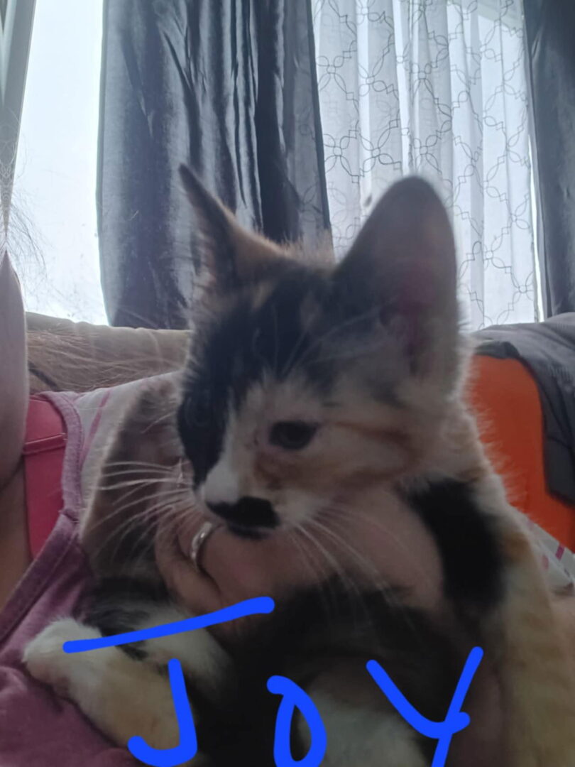 See Joy -BC’s HomepageGo to our official websiteYou can fill out an adoption application online on our official website.Meet Joy! She is 8 weeks old and looking for a home. She lives with dogs, other cats and kids. Litter Box trained and getting used to getting nails clipped. She has started vaccines, been dewormed, microchipped and mom is FIV/FeLV negative! Adoption is $100 each or two for $150 because they are always better in pairs! All animal breeds and ages are a best estimate