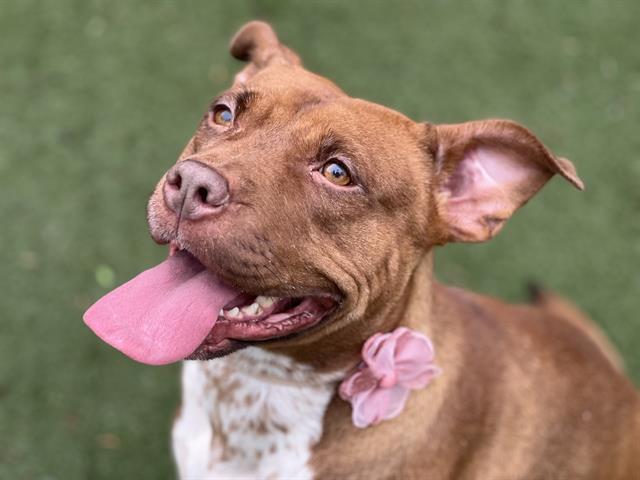 I’m sponsored! Thanks to donor support, my adoption fee will be waived!-Seems to be a house trained – clean kennel + does her business outside promptly-Super sweet + easy going-Easy on leash -Non-reactive to dogs she’s passed at shelter-Smart, so should be easier to train-Very affectionate girl who loves cuddling-Knows sit -Very quiet-Seems to be medium energy level