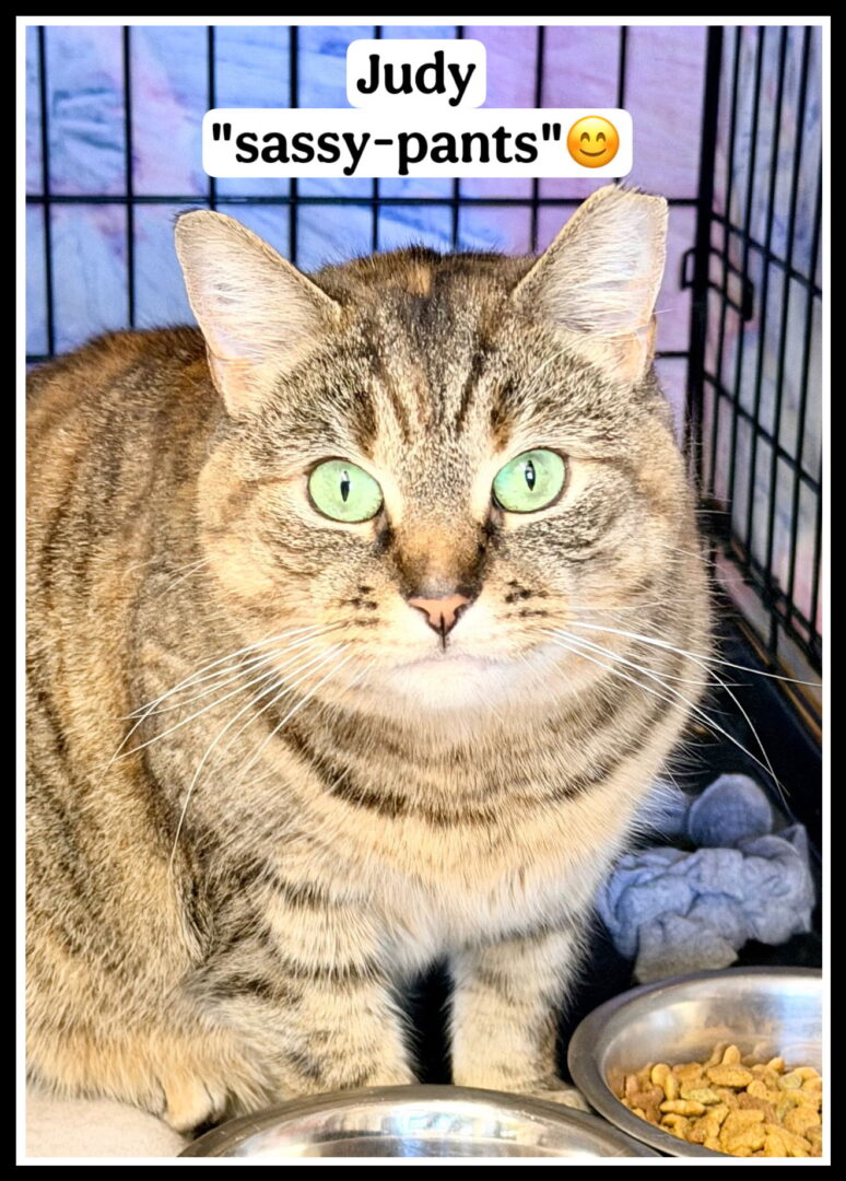Judy Judy Big booty is such a Queen! She’s a ‘thic’ girl with a Tabby/Tortie coloring and beautiful yellow golden eyes. Yes, she’s got some cattitude at times — but that just adds to her charm. Judy is incredibly sweet… you just have to remember it’s on her terms. Once she trusts you, she’ll melt your heart. She’s playful, funny, adorable, and delightfully chubby with cotton-soft fur you’ll want to pet forever. Judy can coexist with other cats as long as they respect her space and keep their distance — she’s an independent lady who values her boundaries. She would do best in a calm, adult-only home with no kids, where she can truly relax and be the center of attention (as she deserves!). If you’re looking for a comical, sassy, sweet companion who will love you in her own special way, Judy might be your perfect match. Please submit our no-obligation Adoption Application for a meet and greet or to adopt: https://forgottencats.org/adoption-application/. Not ready to adopt? Please consider fostering: https://forgottencats.org/foster-a-cat/. Thank you! (Foster: Willow Grove)