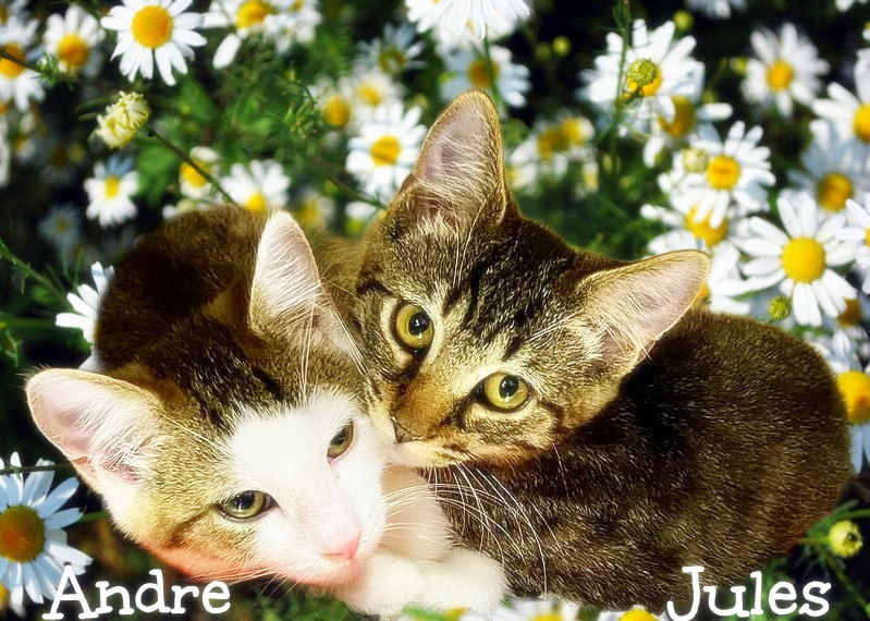 Meet Andre and Jules, just 3 months old! They came to us with their family when a VA shelter was at capacity and needed to move cats out before possible euthanasia.Jules (male) is a handsome short-haired, dark brown tabby with big loving eyes. He loves playing with Andre and is a curious explorer, and is one of the first to try new things. He greets you at the door, is the first ready to eat, and loves to play . Andre (male) is a short haired white and brown tabby. He can always be found snuggling with Jules. He loves to instigate the play by jumping on Jules when he is napping. Both kittens are loving, cuddly, and playful and would do best in a quieter home, low to moderate activity. If children, over 5 – 6 years old.They are bonded and must be adopted together – adopt 1, get 1 free!All kittens are ready to be adopted with an approved application. Both are/will be dewormed, neutered, receive 2 FVRCP vaccines, a rabies vaccine at 4 mos., combo tested, and microchipped with a lifetime registration.If you are interested in adopting, please fill out an application and email to us at GoodMews22@aol.com. Interested? Please fill out a digital application! https://submit.jotform.com/221029453063044
