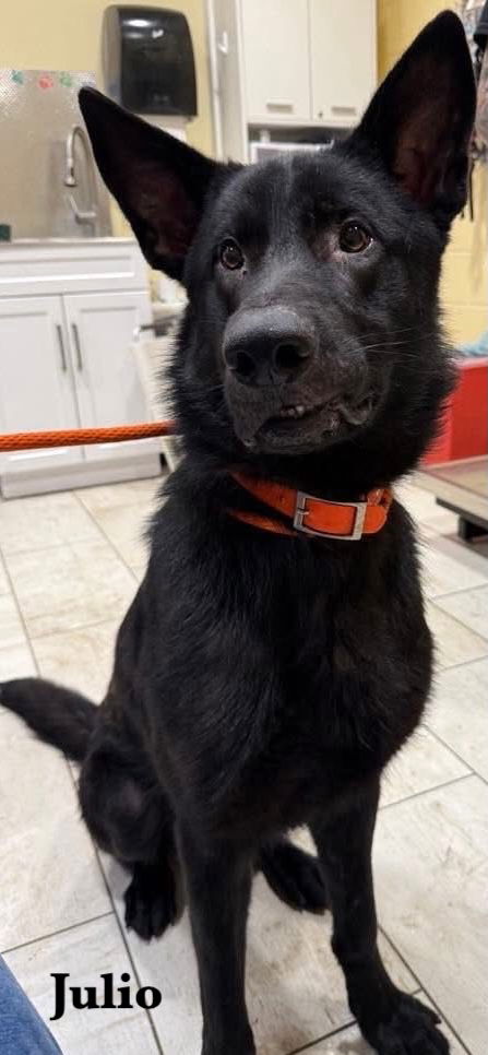 See Julio’s HomepageGo to our official websiteYou can fill out an adoption application online on our official website.Meet Julio – an energetic and mischievous pup ready for a new start ! Julio is an 85-pound black German Shepherd puppy with a heart as big as his paws. This handsome young boy barely escaped euthanasia at a crowded shelter, but thanks to a second chance, he’s now safe and beginning to discover what love and security feel like. Still a bit unsure of his new surroundings, Julio is taking it all in with enthusiasm and sometimes an overly energetic approach ……Julio LOVES to play ball and plays with gusto….still bit unsure of himself he barks reactively when he sees other dogs. Dedicated volunteers are working with him to give him confidence and basic obedience along with helping him with impulse control when he sees passing cars . Julio's ideal home would be one with experience with herding dogs with a good prey /ball drive . If you’re looking for a loyal companion with a heart full of potential, Julio may be the perfect match. His next chapter is just beginning. Could it be with you? If you are not yet approved to adopt from All Shepherd Rescue, please fill out our online application at www.allshepherdrescue.com. Our adoption fee is $350.00
