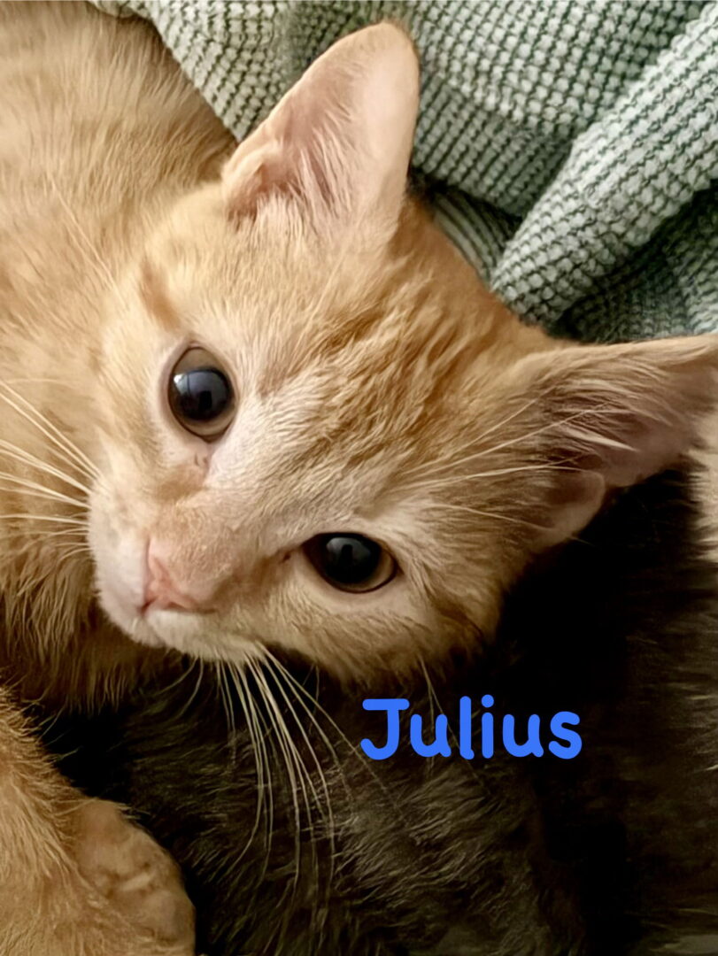 See Julius’s HomepageGo to our official websiteADOPTED _ Introducing Julius, the tiny emperor of Charm! This regal little ruler surveys his kingdom with calm curiosity, always on the lookout for cozy spots to conquer. After a grand tour of his empire (your living room), he settles in for a royal nap. His big green eyes are worthy of a portrait – truly the stuff of legends. Julius is 8 weeks old and ready for adoption! Interested in this Little Buddy? For the fastest response, please call our Adoption Coordinator at 703-431-5931 and leave a voicemail with your name, number and name(s) of the Little Buddy(s) you are interested in learning more about. Our Adoption Coordinator will return your call in 24-48 hours. Calls will be returned in the order they are received. Please only call once and remember to leave a detailed voicemail. Our adoption fee is $190 for a cat or kitten. This includes spay/neuter, microchipping, combo testing, age-appropriate vaccinations, deworming, flea treatment and any necessary medical care prior to adoption.