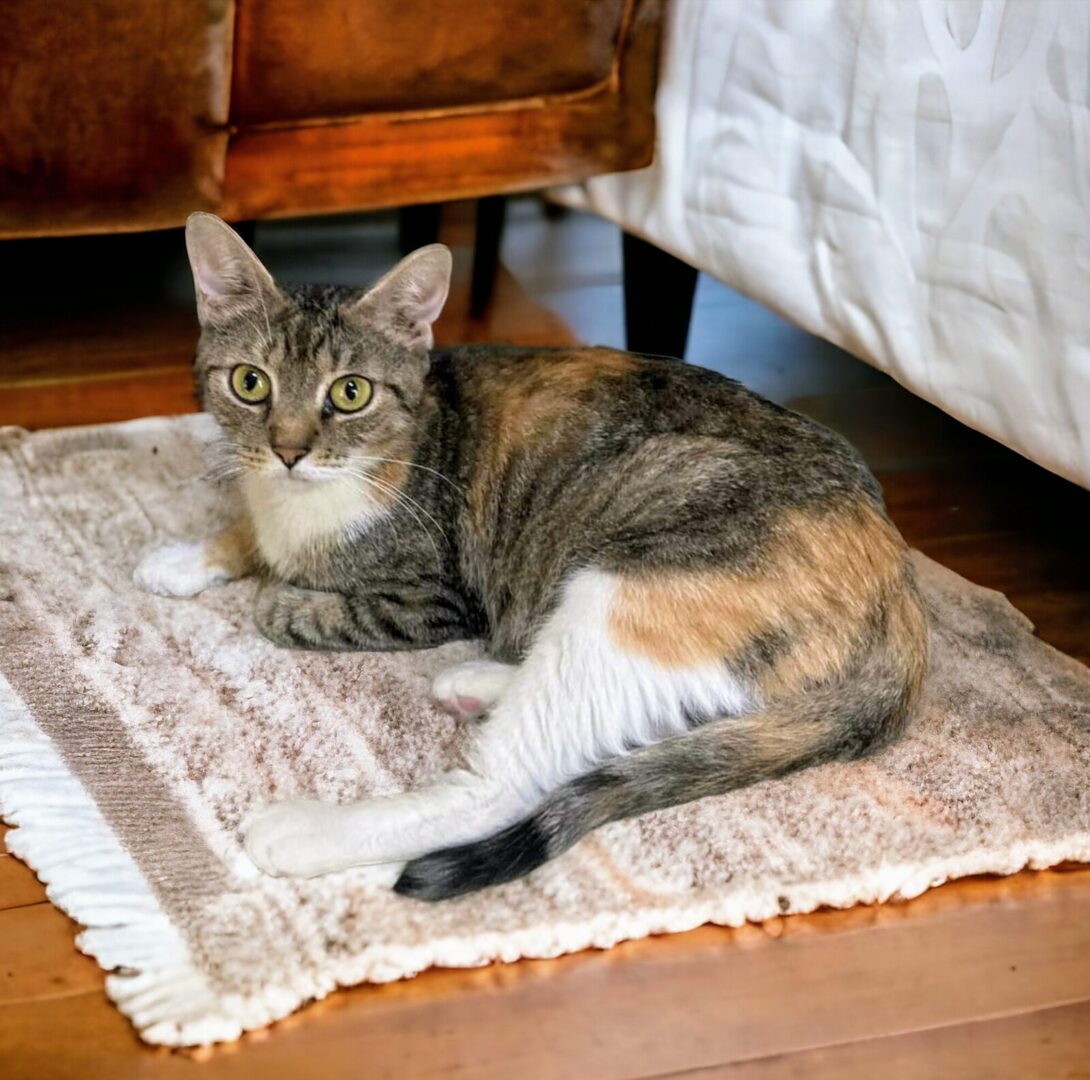 Say hi to Jungle! This beautiful and soft calico/tabby girl is about 5 years old and is finally done mothering kittens! She is friendly, laid back, very gentle, and gets along with other cats easily! She likes cat nip toys and would would make a great cat for a variety of families.